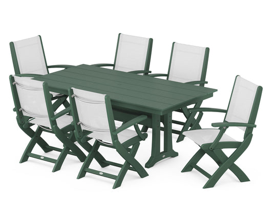 Coastal Folding Arm Chair 7-Piece Farmhouse Dining Set with Trestle Legs