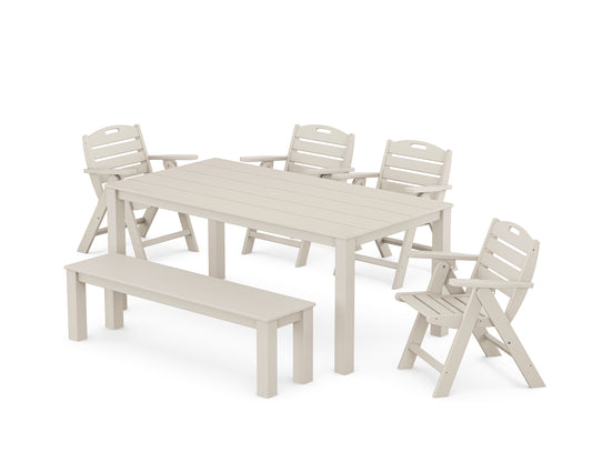 Nautical Folding Lowback Chair 6-Piece Parsons Dining Set with Bench