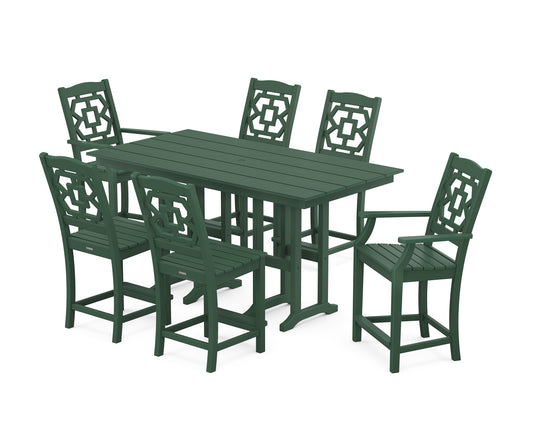 Chinoiserie 7-Piece Farmhouse Counter Set with Trestle Legs