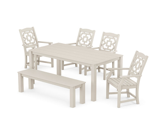 Chinoiserie 6-Piece Parsons Dining Set with Bench