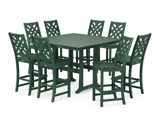 Wovendale Side Chair 9-Piece Square Farmhouse Bar Set with Trestle Legs