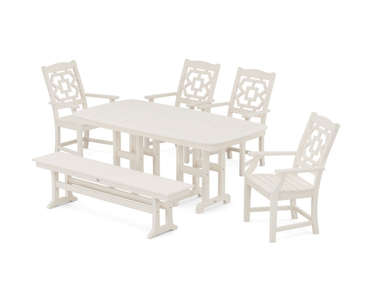 Chinoiserie 6-Piece Rustic Farmhouse Dining Set with Bench