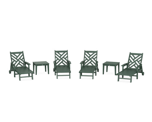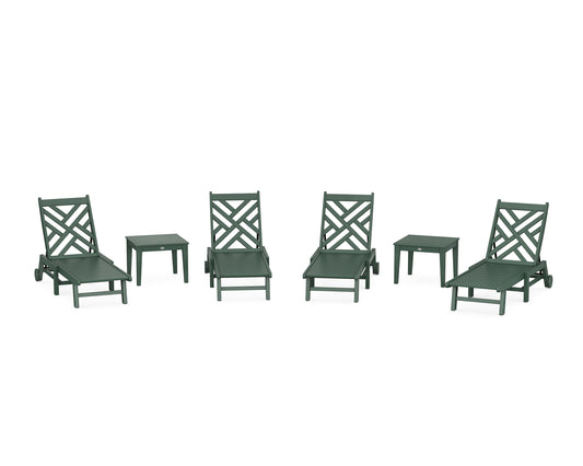 Chippendale 6-Piece Chaise Set with Wheels and Umbrella Stand Accent Table