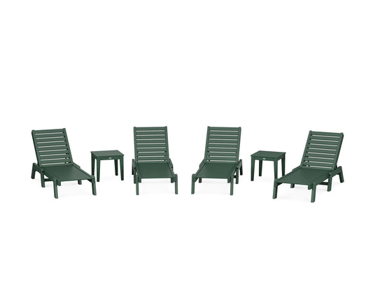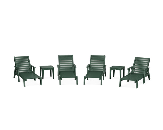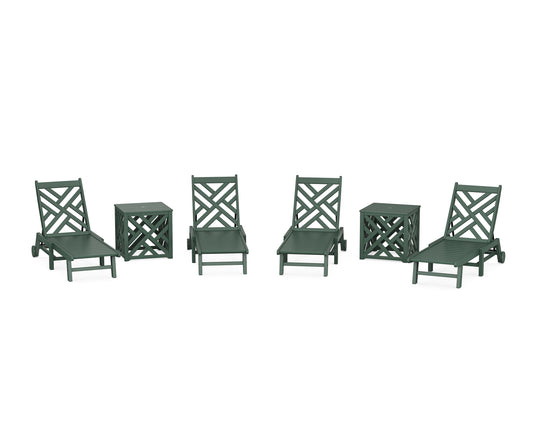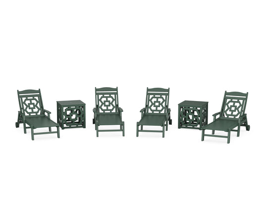 Chinoiserie 6-Piece Chaise Set with Umbrella Stand Accent Table