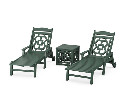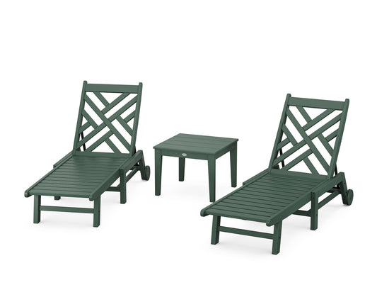 Chippendale 3-Piece Chaise Set with Wheels and Umbrella Stand Accent Table