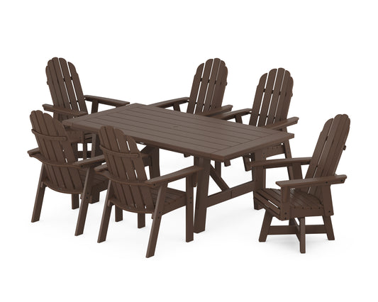 Vineyard Curveback Adirondack Swivel Chair 7-Piece Rustic Farmhouse Dining Set