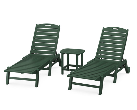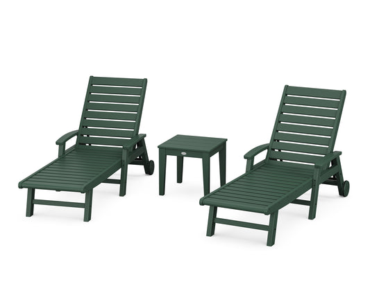 Nautical 3-Piece Chaise Lounge with Wheels Set with South Beach 18" Side Table