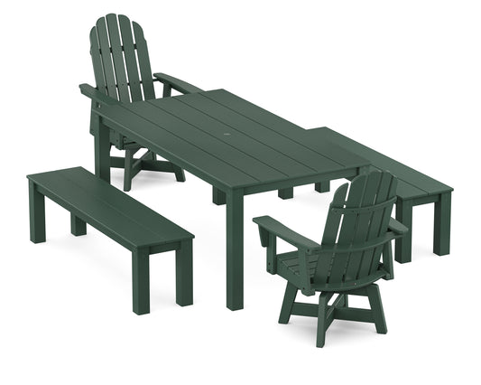 Vineyard Curveback Adirondack 5-Piece Parsons Swivel Dining Set with Benches
