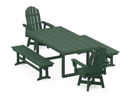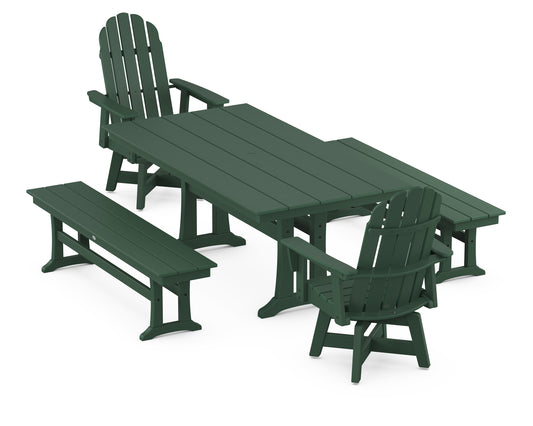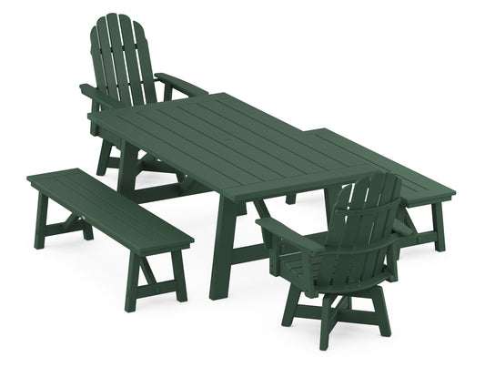Vineyard Curveback Adirondack Swivel Chair 5-Piece Dining Set with Benches