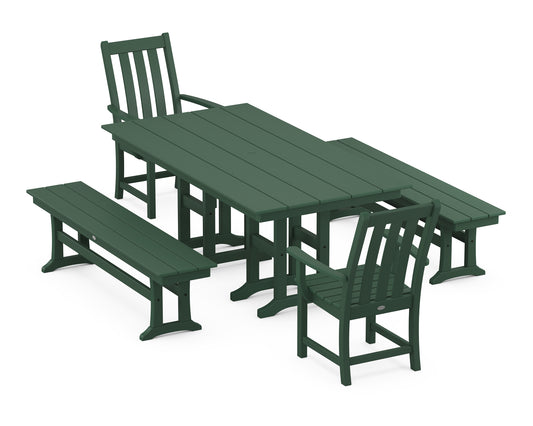 Vineyard 5-Piece Farmhouse Dining Set with Benches