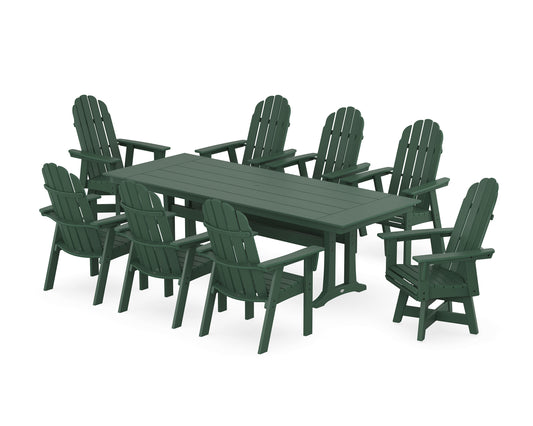 Vineyard 9-Piece Curveback Adirondack Swivel Farmhouse Dining Set with Trestle Legs