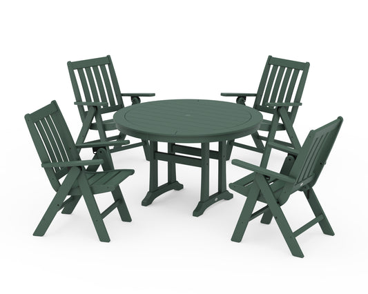 Vineyard Folding Chair 5-Piece Round Dining Set with Trestle Legs