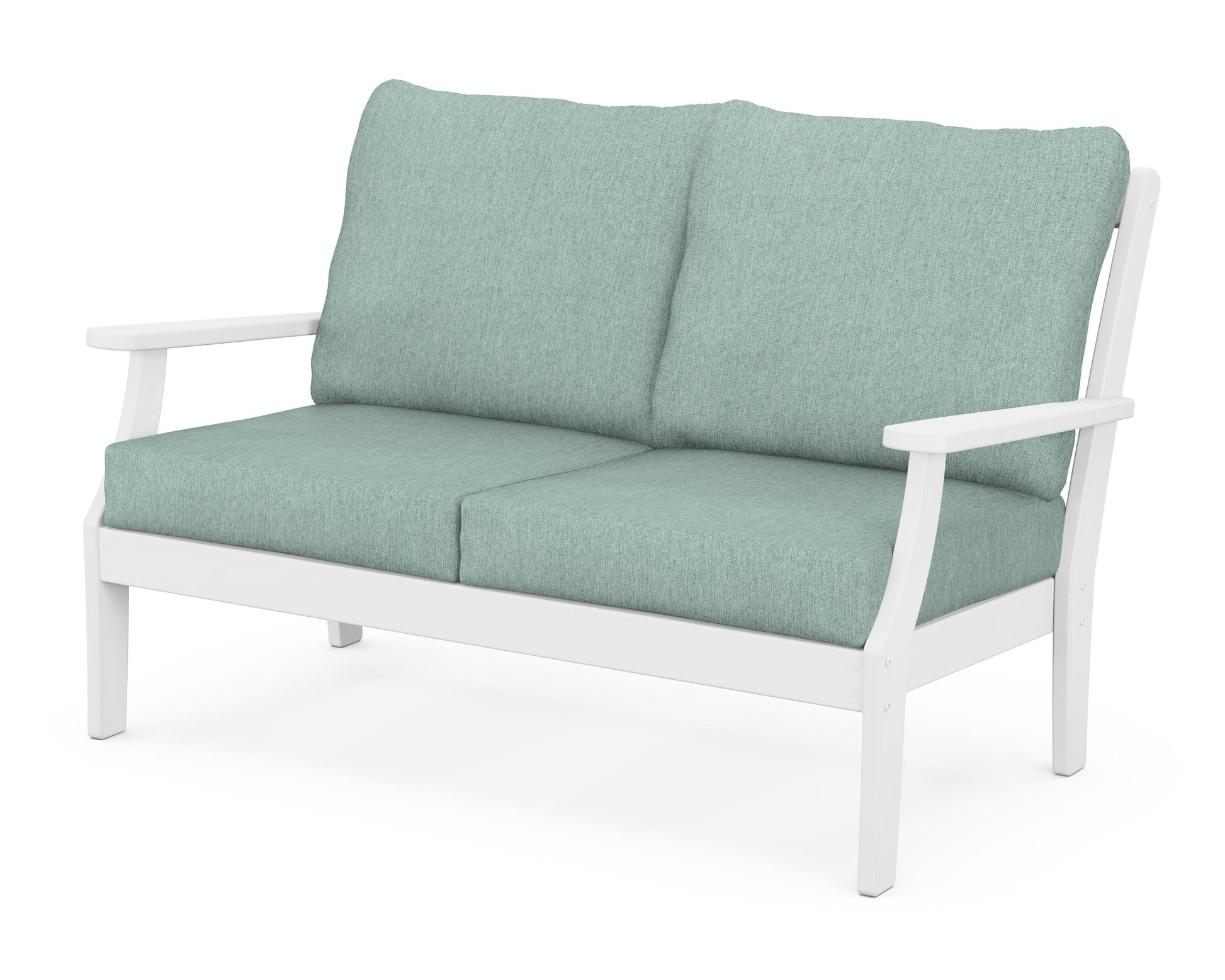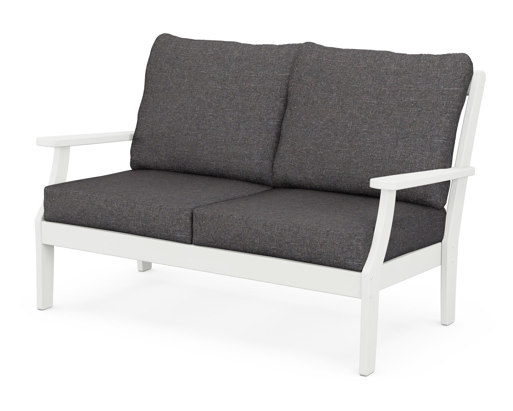 The Braxton Deep Seating Loveseat seats two and pairs comfort and style with soft pillow back cushions and a charming cross back design. This loveseat strikes the perfect balance of straight lines and curved details for a style that is both traditional and timeless. Group this all-weather loveseat with a coordinating Newport End Table or combine with the rest of the Braxton Collection to create a cohesive outdoor space.