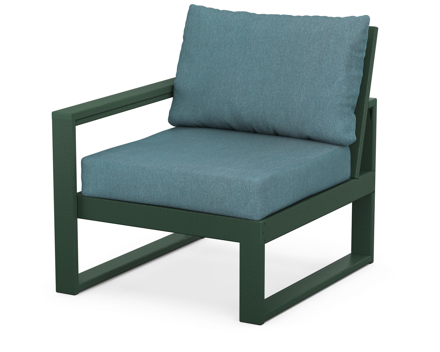 Designed for comfort and style, the EDGE Modular Collection is scaled for a variety of outdoor living areas — from a spacious patio to an intimate balcony. Featuring sleek, angular lines, this modern deep seating chair features a plush pillow-back cushion as well as a supportive seat cushion covered in high-performance outdoor fabric. Pair the EDGE Modular Left Chair with the rest of the collection to create a unique piece of furniture that is custom fit for your outdoor space.