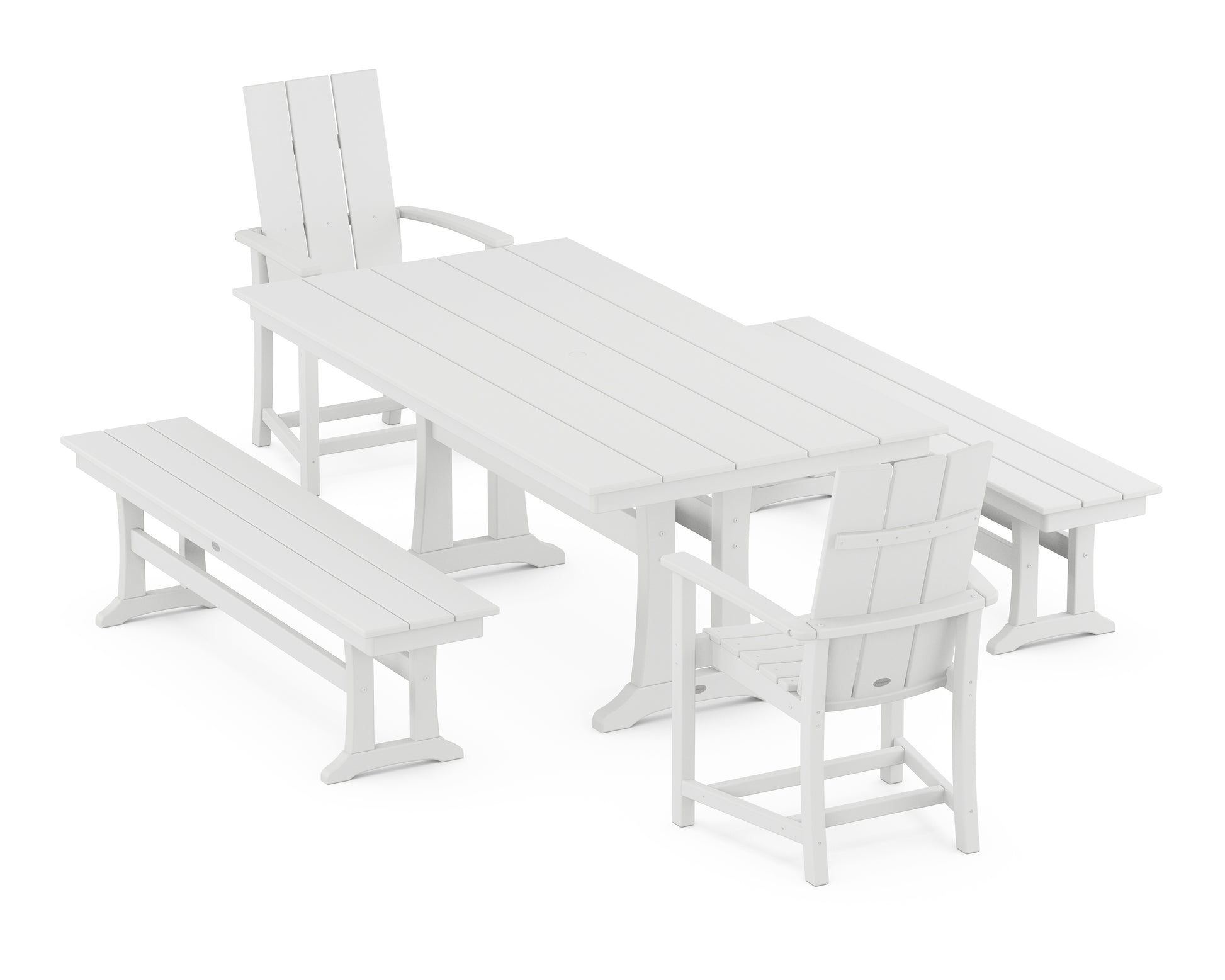 Modern Adirondack 5-Piece Farmhouse Dining Set With Trestle Legs