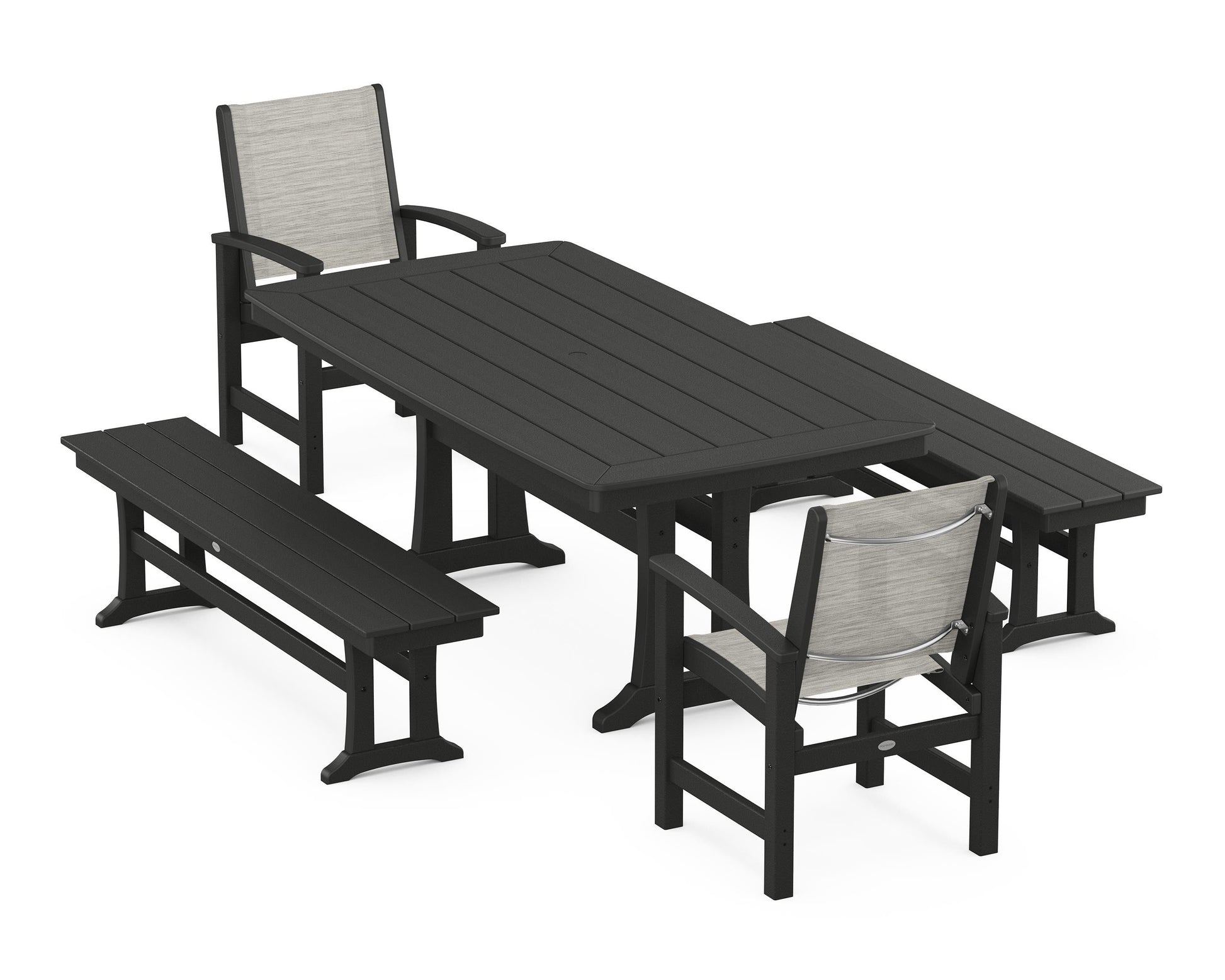 Coastal 5-Piece Dining Set with Trestle Legs and Benches