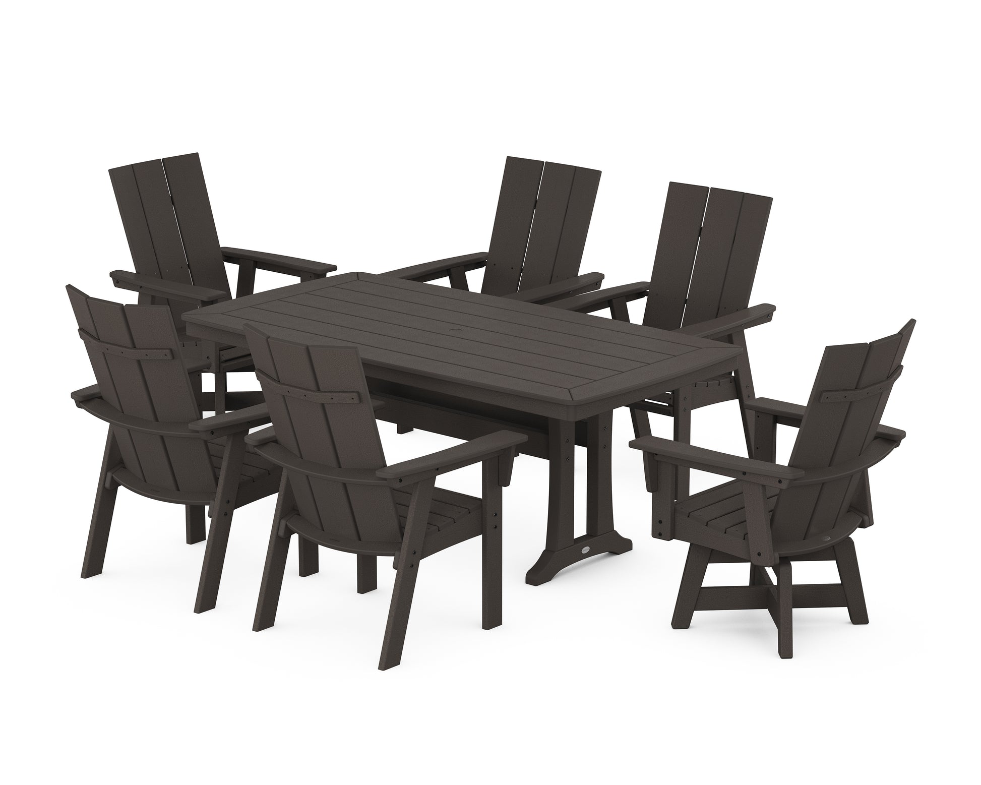 Modern Adirondack Swivel Chair 7-Piece Dining Set with Trestle Legs