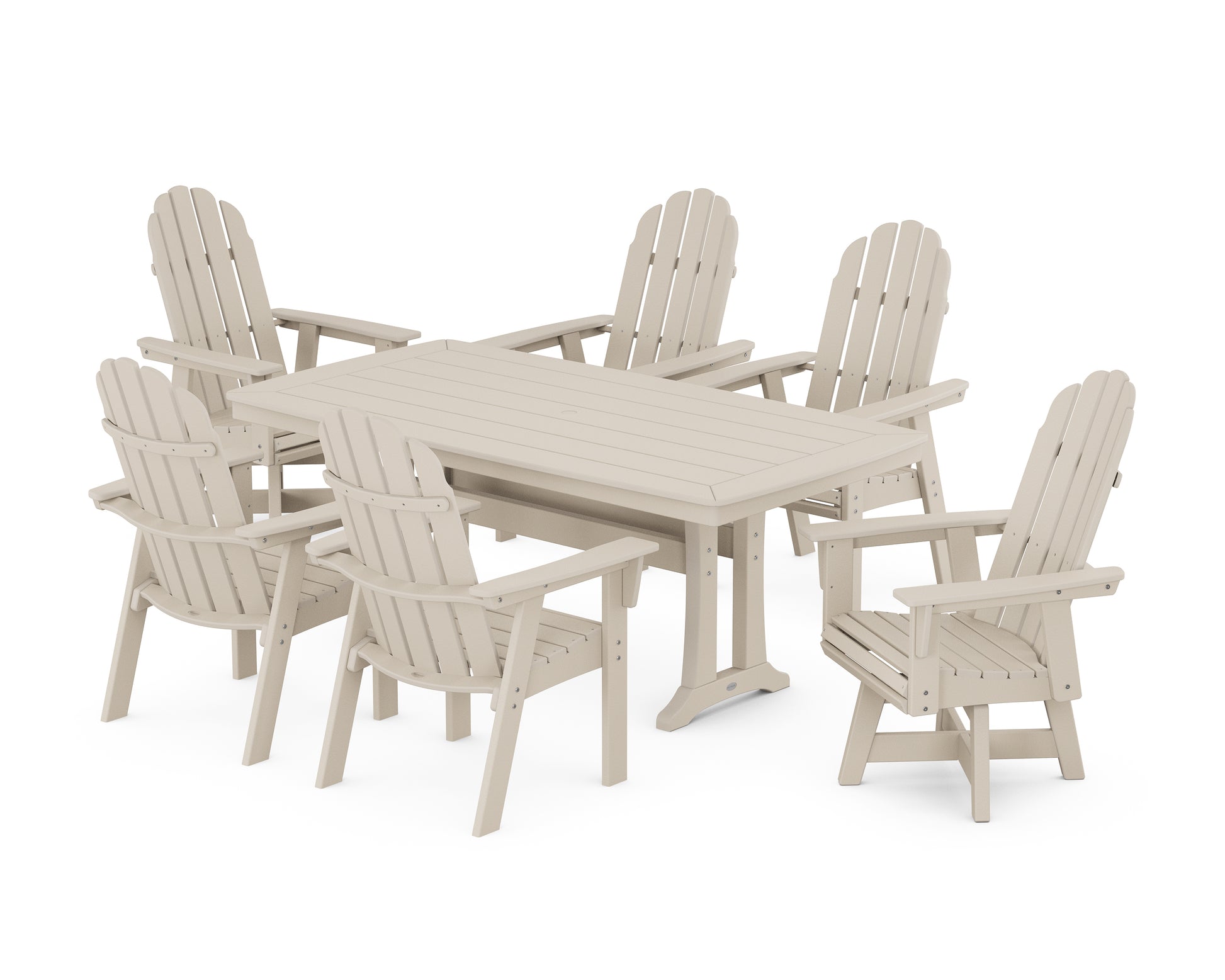 Vineyard Curveback Adirondack Swivel Chair 7-Piece Dining Set with Trestle Legs