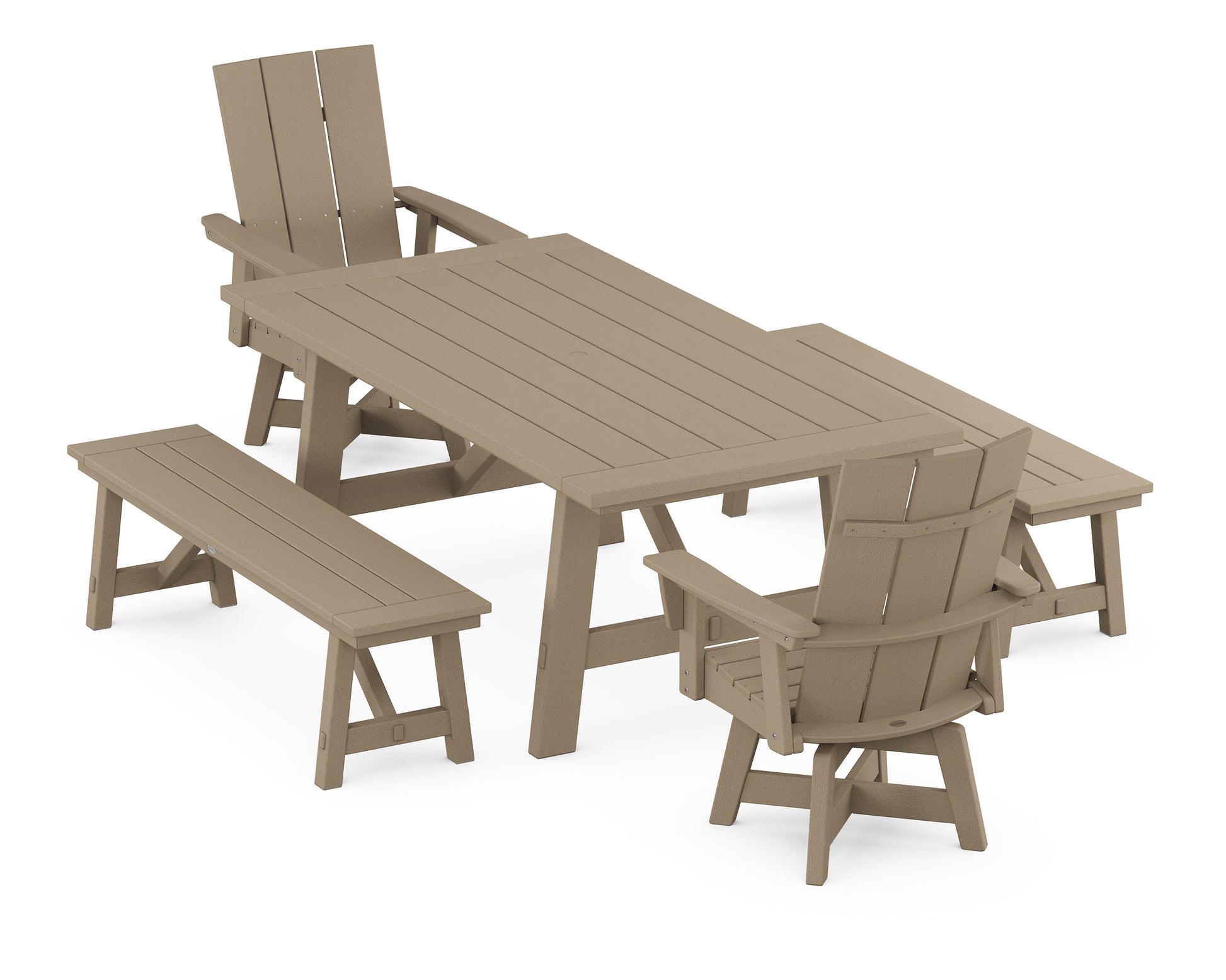 Modern Curveback Adirondack Swivel Chair 5-Piece Rustic Farmhouse Dining Set With Benches