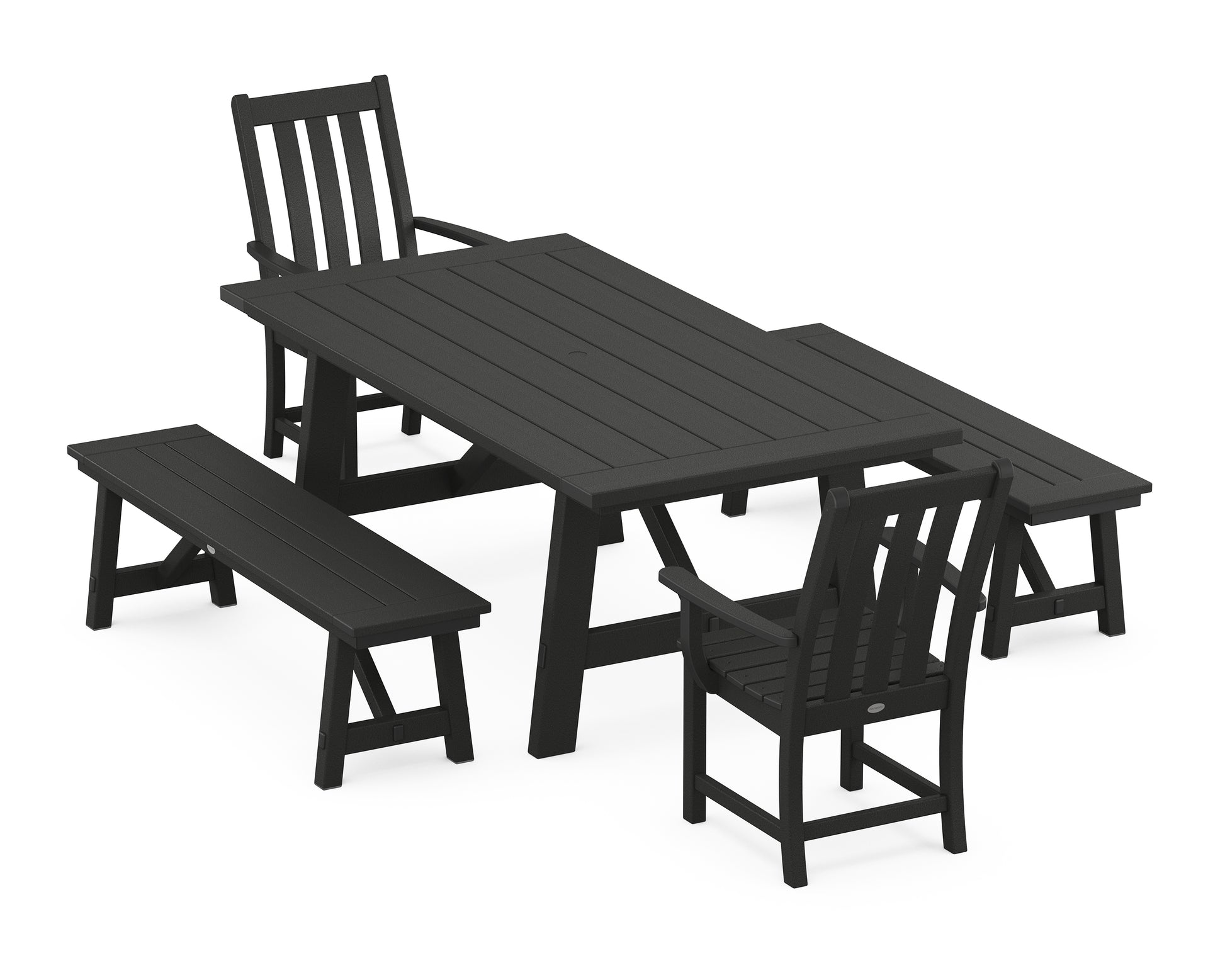 Vineyard 5-Piece Rustic Farmhouse Dining Set With Benches