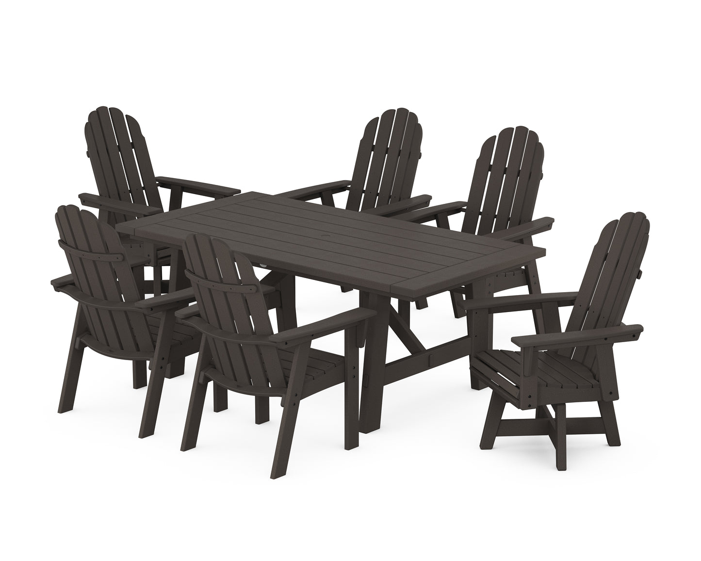Vineyard Curveback Adirondack Swivel Chair 7-Piece Rustic Farmhouse Dining Set