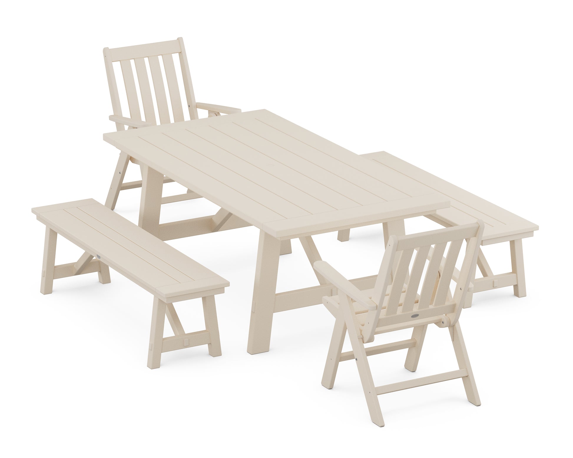 Vineyard Folding Chair 5-Piece Rustic Farmhouse Dining Set With Benches