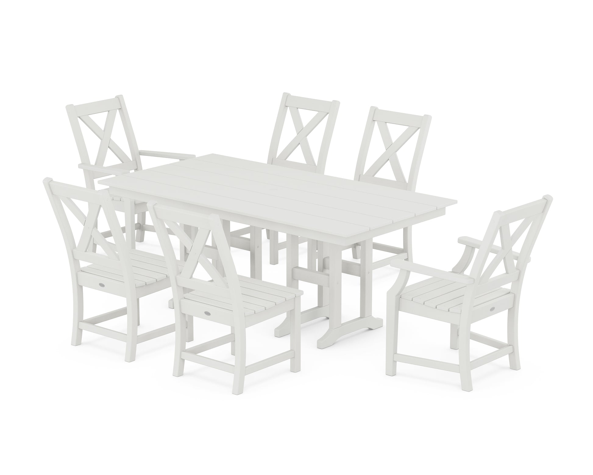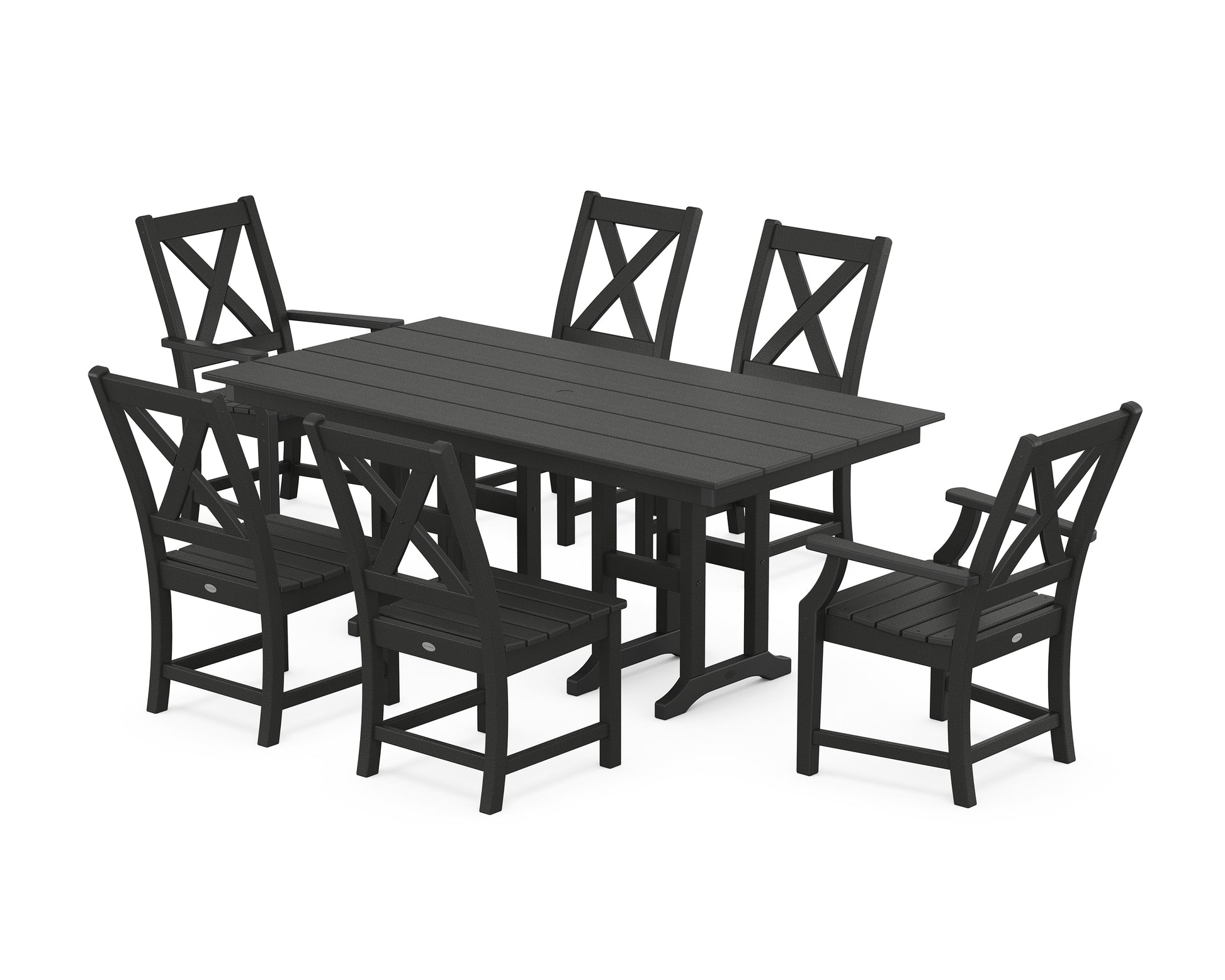 A blend of modern design and rustic elements, the Braxton Collection is always a conversation starter. Forever in season and forever in style, this all-weather collection finds its balance with clean lines, curved profiles, and farmhouse-inspired x-back design. Set an inviting dinner scene for family and friends with our Braxton 7-Piece Farmhouse Dining Set, shown here with four side chairs and two armchairs sitting pretty around a rectangle dining table.