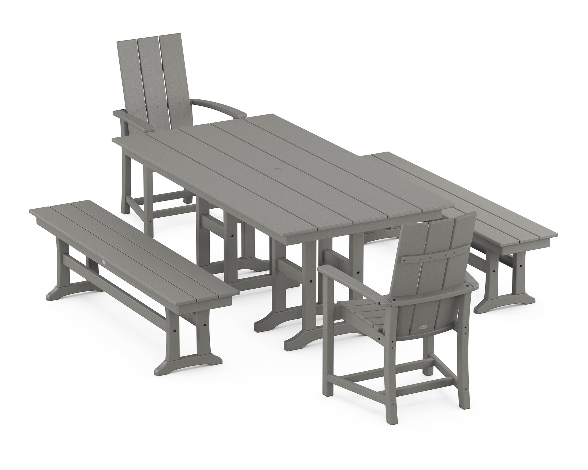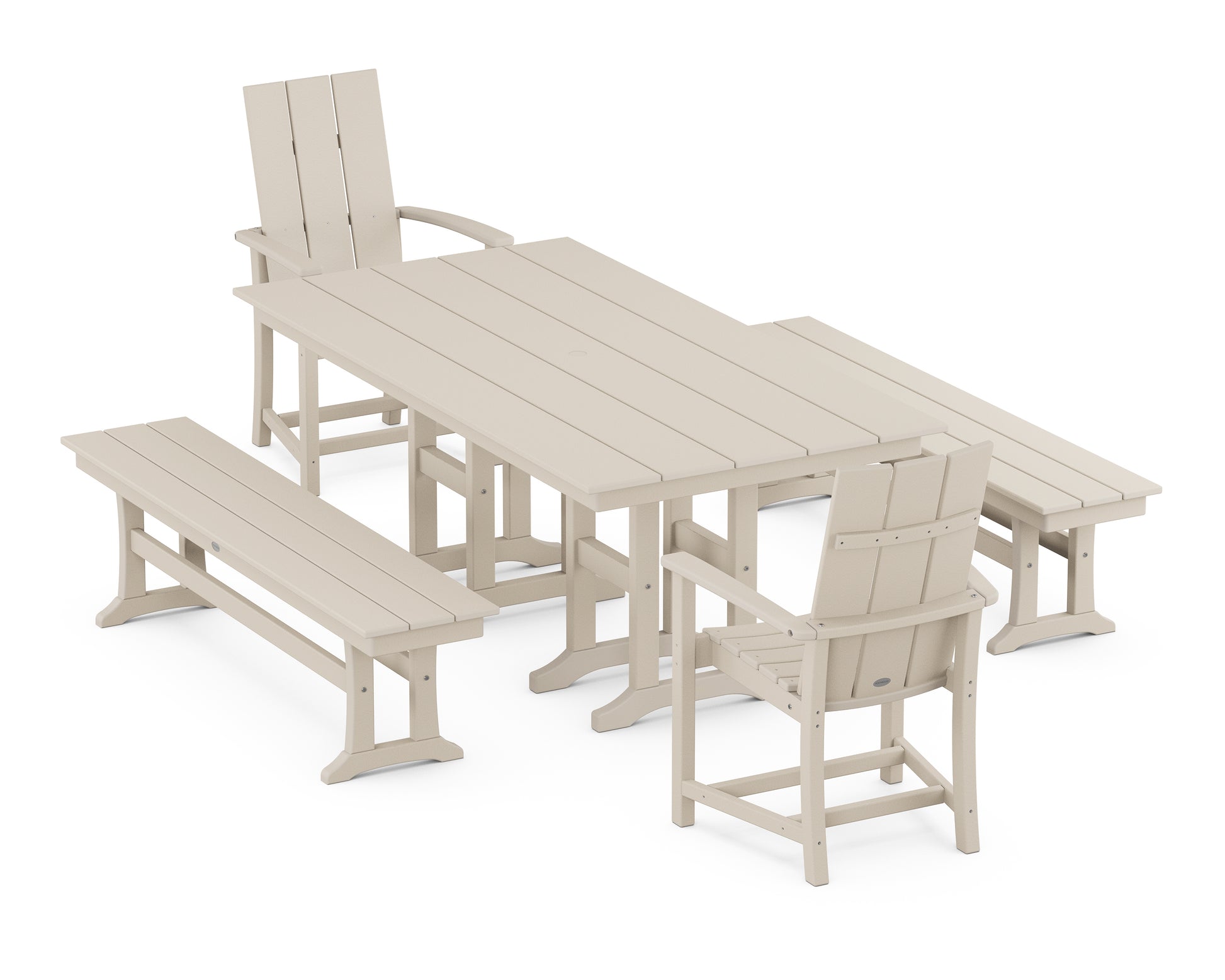 Modern Adirondack 5-Piece Farmhouse Dining Set with Benches