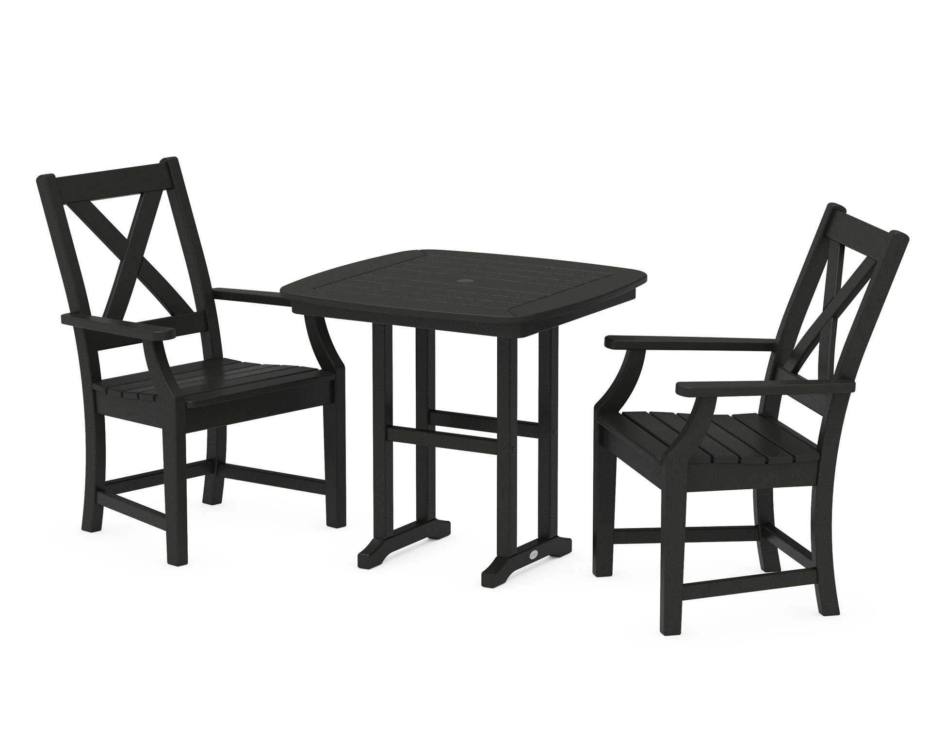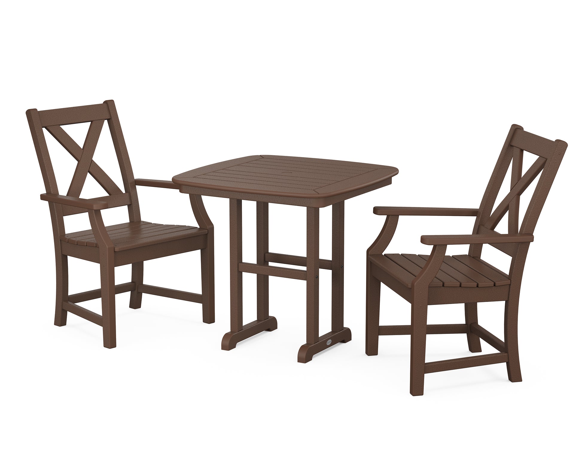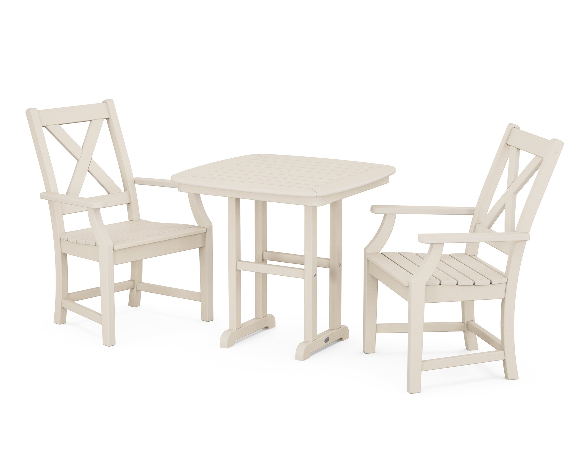 A blend of modern design and rustic elements, the Braxton Collection is always a conversation starter. Forever in season and forever in style, this all-weather collection finds its balance with clean lines, curved profiles, and farmhouse-inspired x-back design. Set an inviting dinner scene for family and friends with our Braxton 3-Piece Dining Set, shown here with two armchairs sitting pretty around a square dining table.