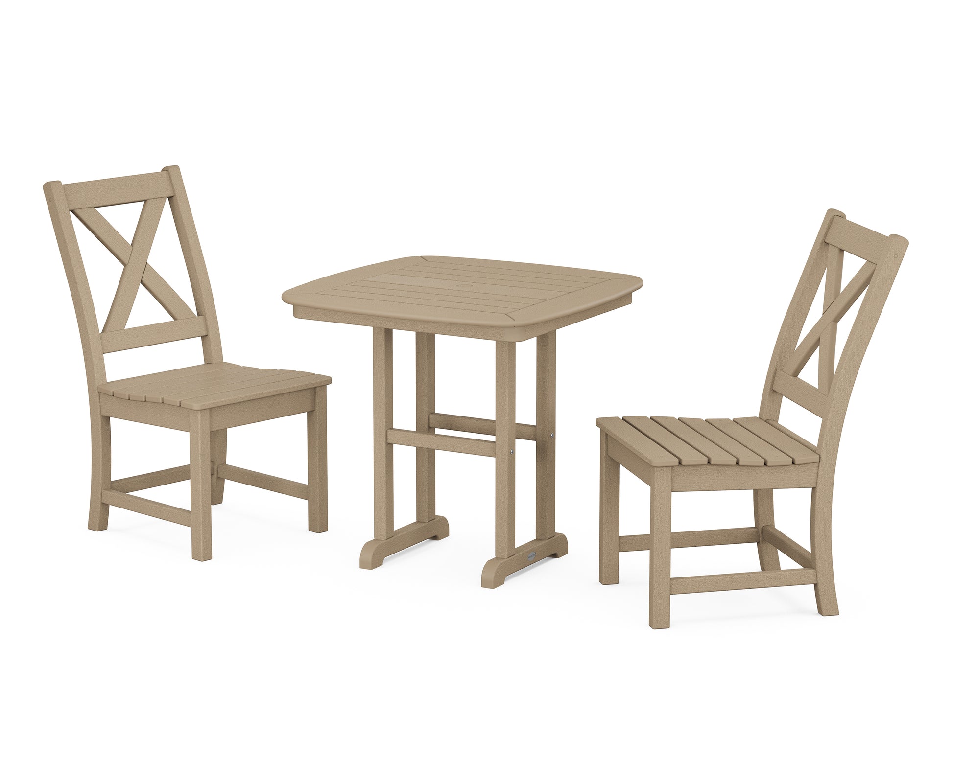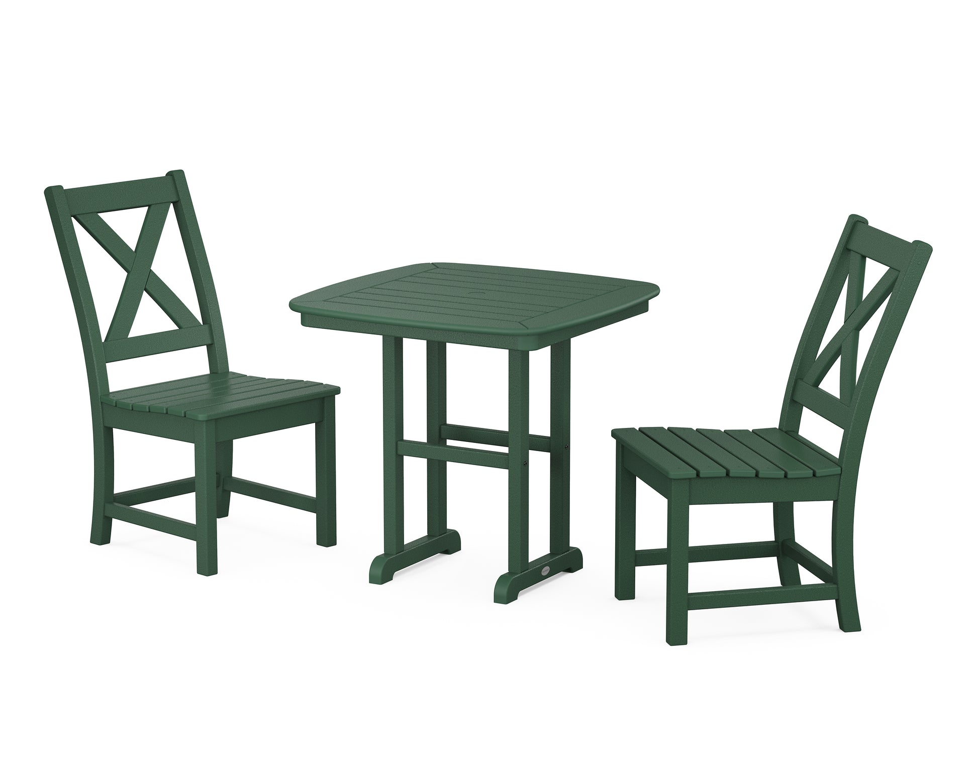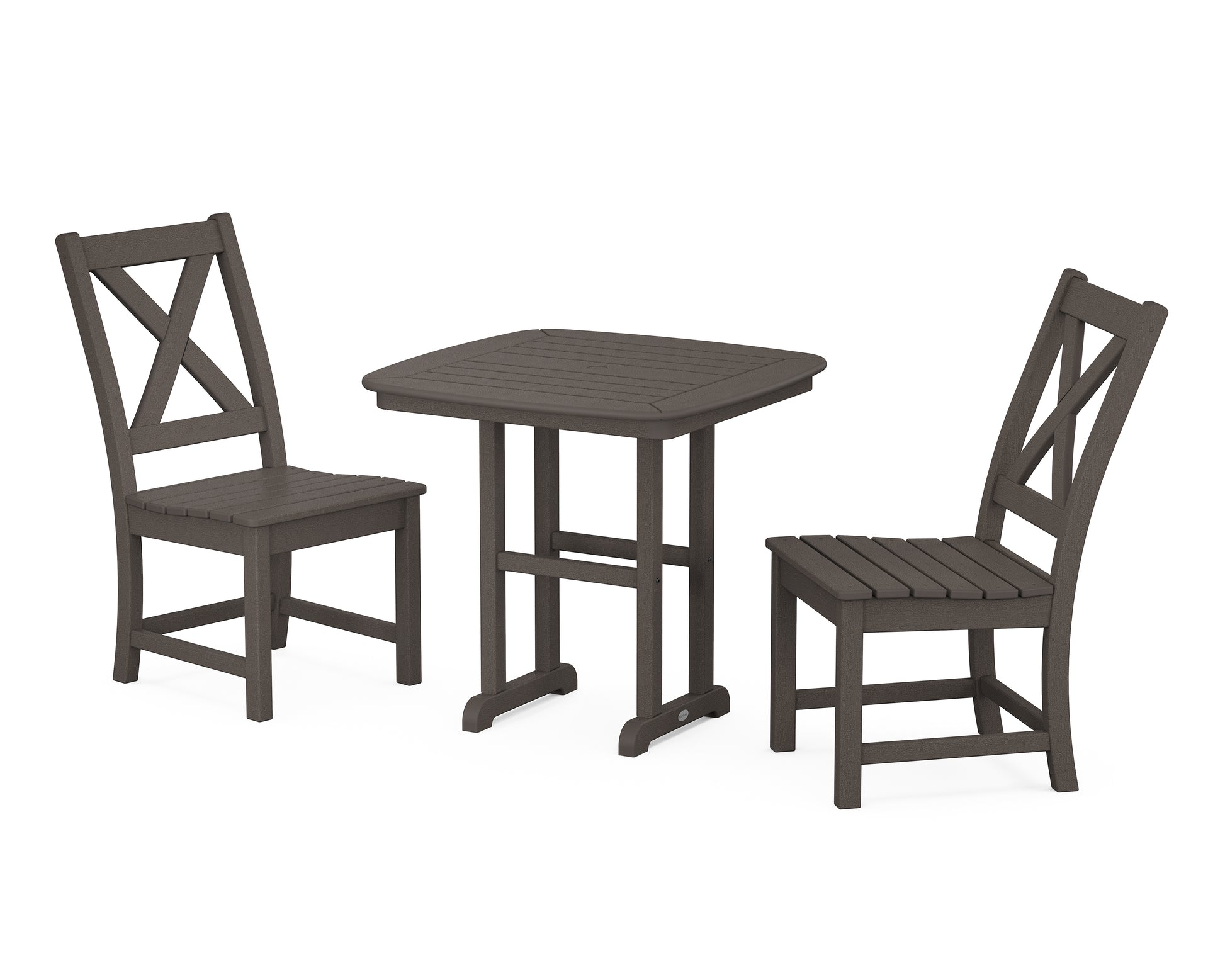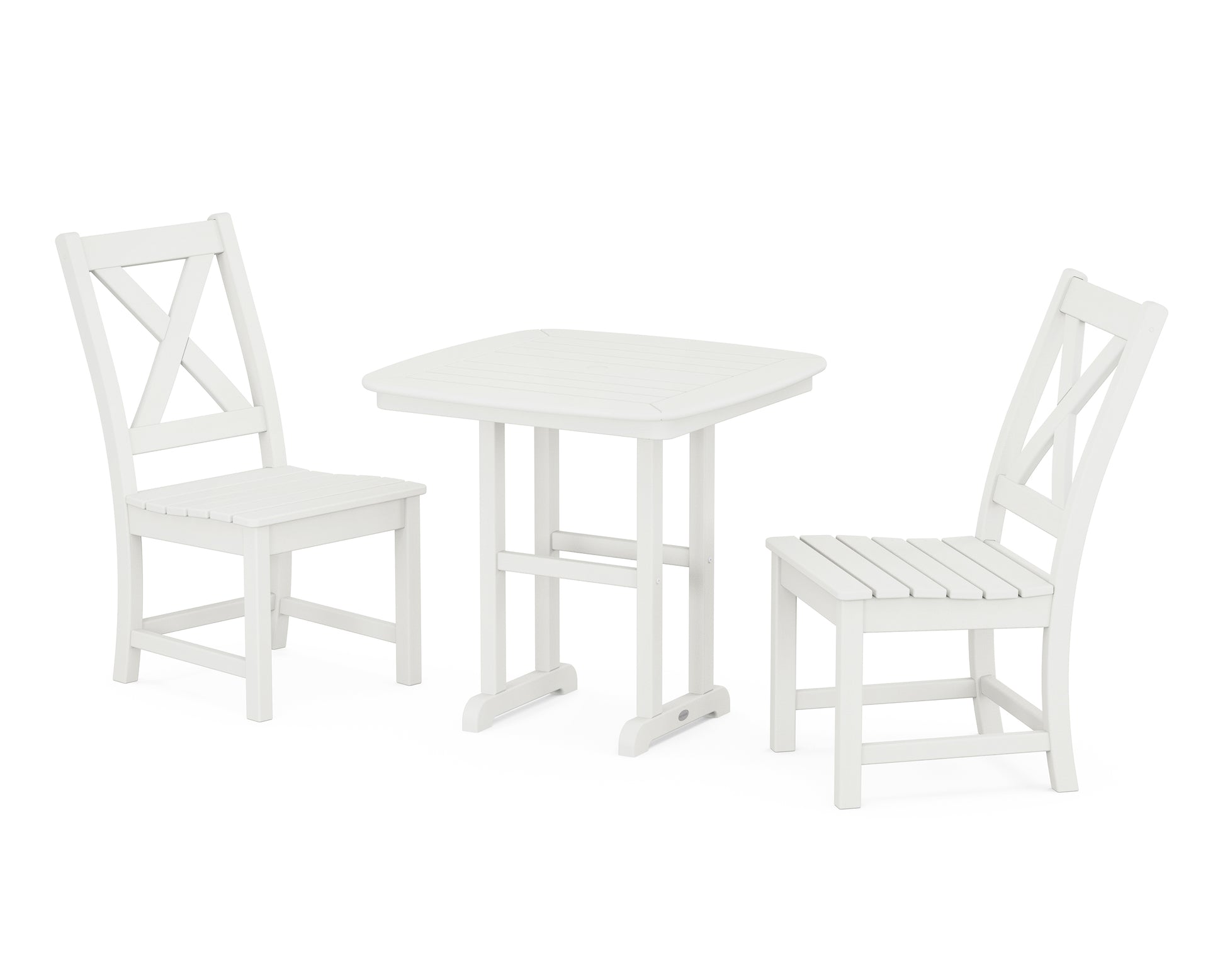 A blend of modern design and rustic elements, the Braxton Collection is always a conversation starter. Forever in season and forever in style, this all-weather collection finds its balance with clean lines, curved profiles, and farmhouse-inspired x-back design. Set an inviting dinner scene for family and friends with our Braxton Side Chair 3-Piece Dining Set, shown here with two side chairs sitting pretty around a square dining table.