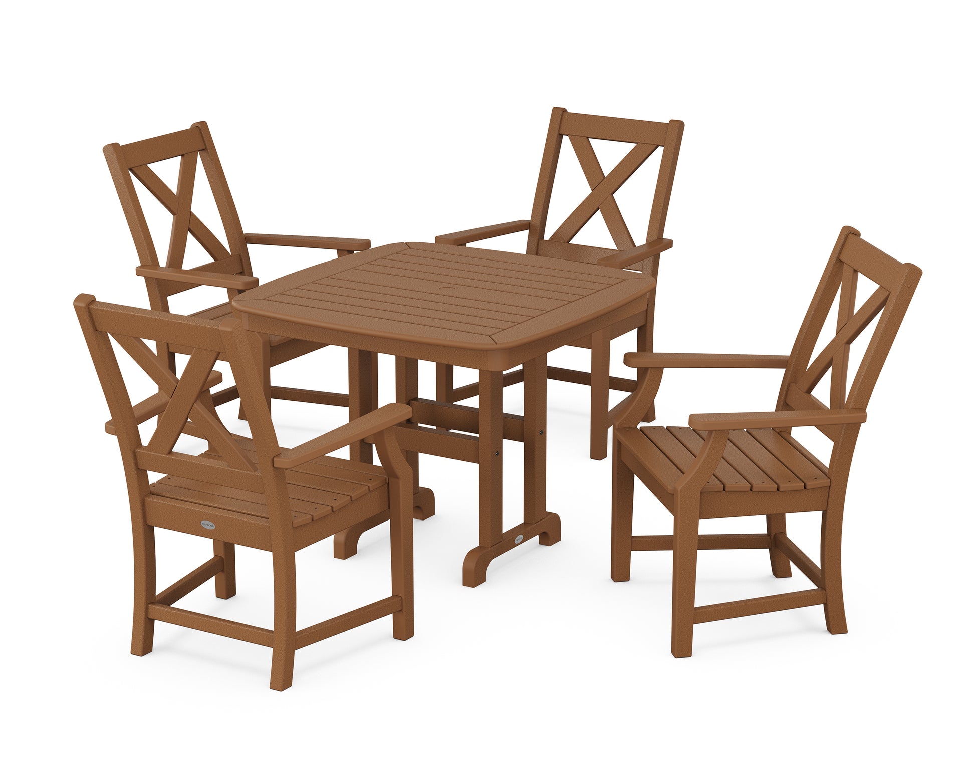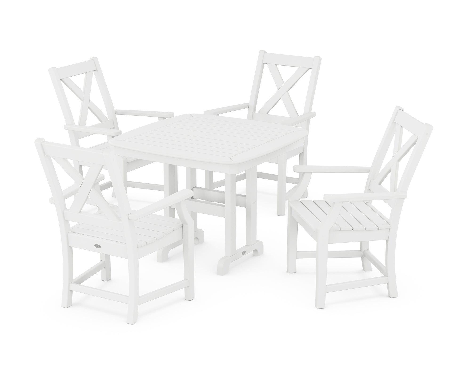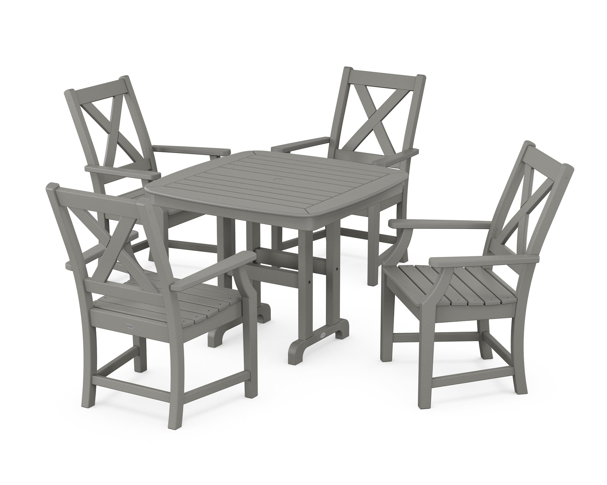 A blend of modern design and rustic elements, the Braxton Collection is always a conversation starter. Forever in season and forever in style, this all-weather collection finds its balance with clean lines, curved profiles, and farmhouse-inspired x-back design. Set an inviting dinner scene for family and friends with our Braxton 5-Piece Dining Set, shown here with four armchairs sitting pretty around a square dining table.
