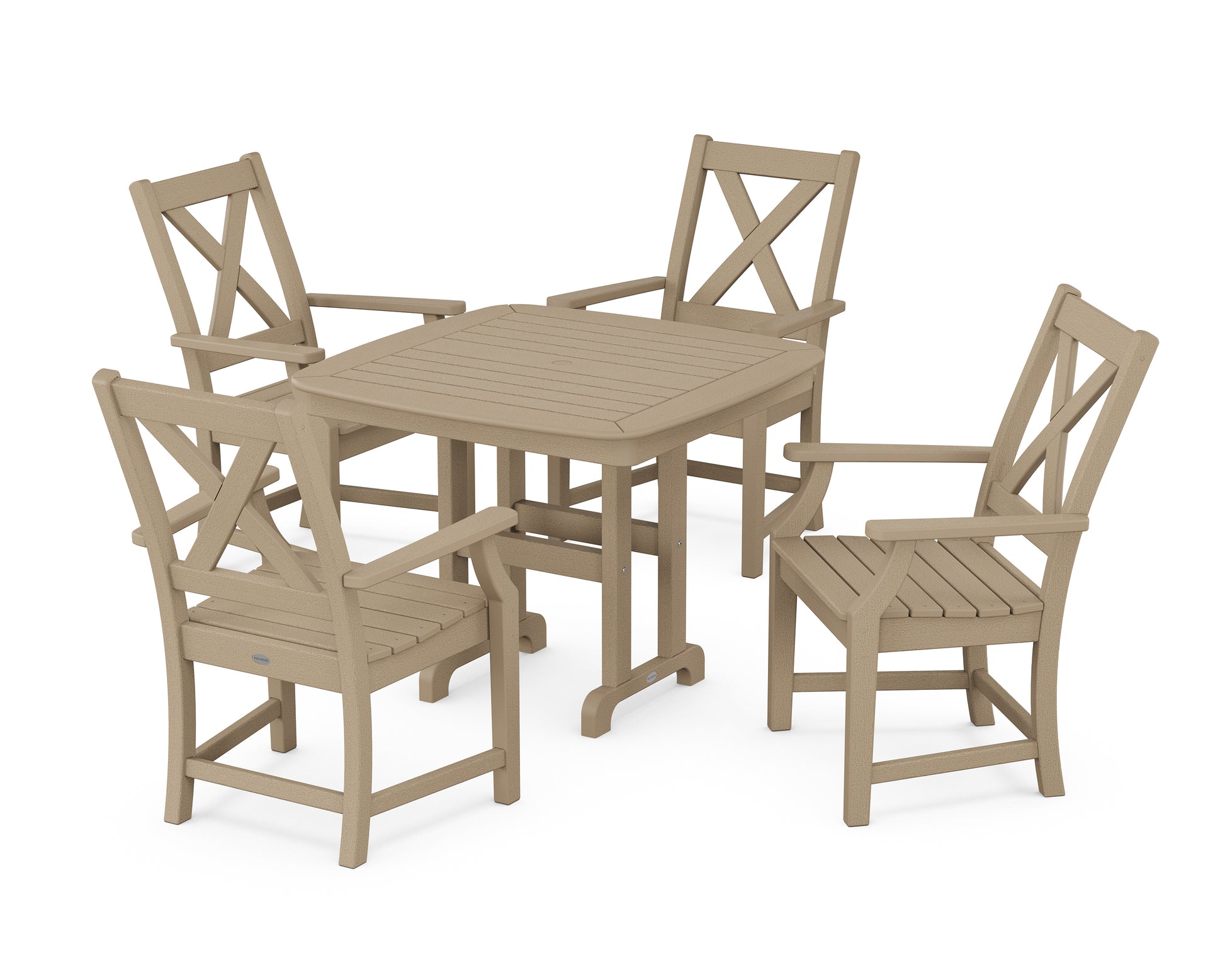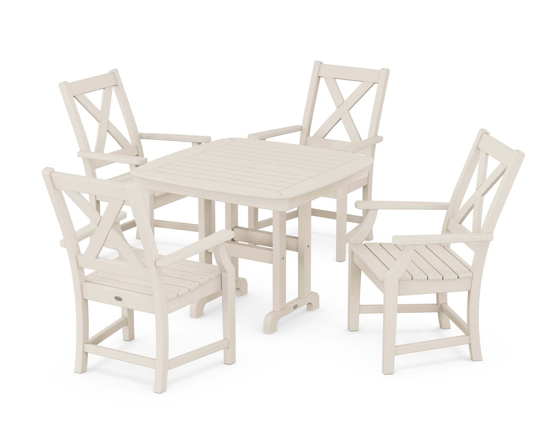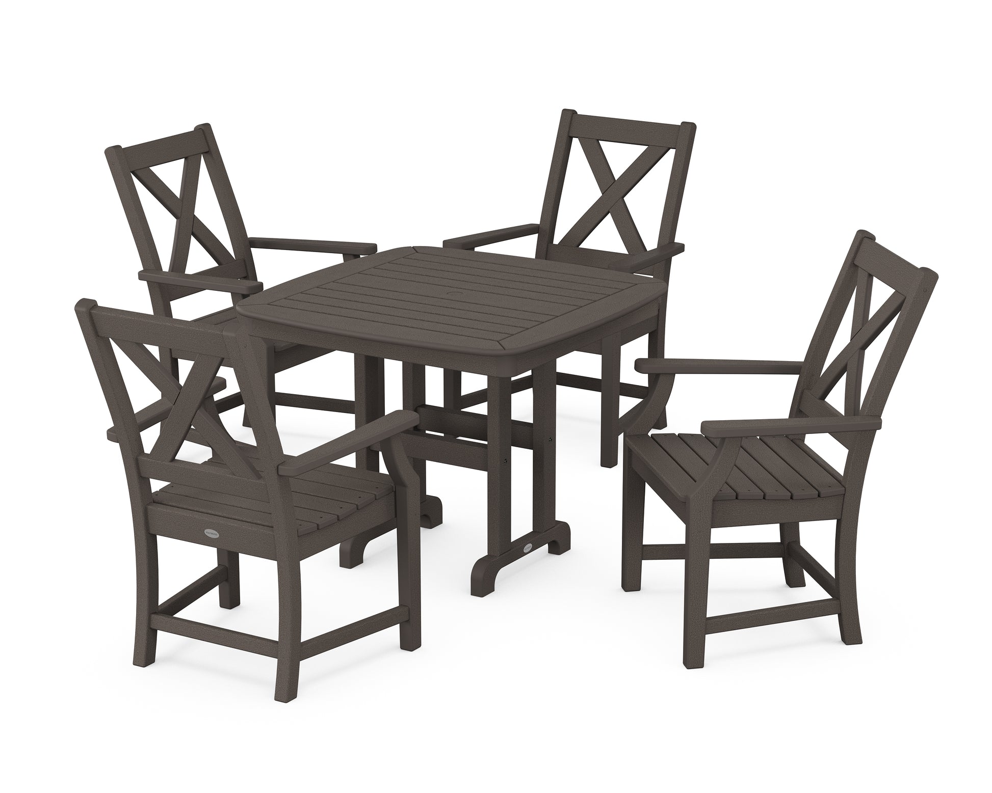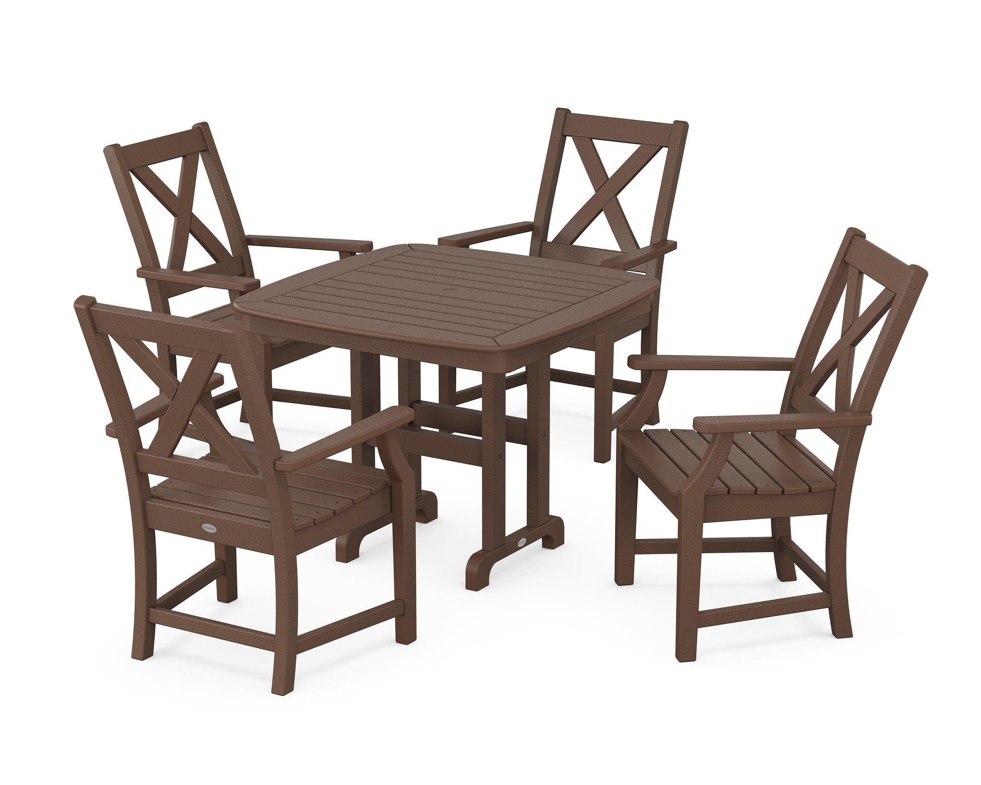 A blend of modern design and rustic elements, the Braxton Collection is always a conversation starter. Forever in season and forever in style, this all-weather collection finds its balance with clean lines, curved profiles, and farmhouse-inspired x-back design. Set an inviting dinner scene for family and friends with our Braxton 5-Piece Dining Set, shown here with four armchairs sitting pretty around a square dining table.