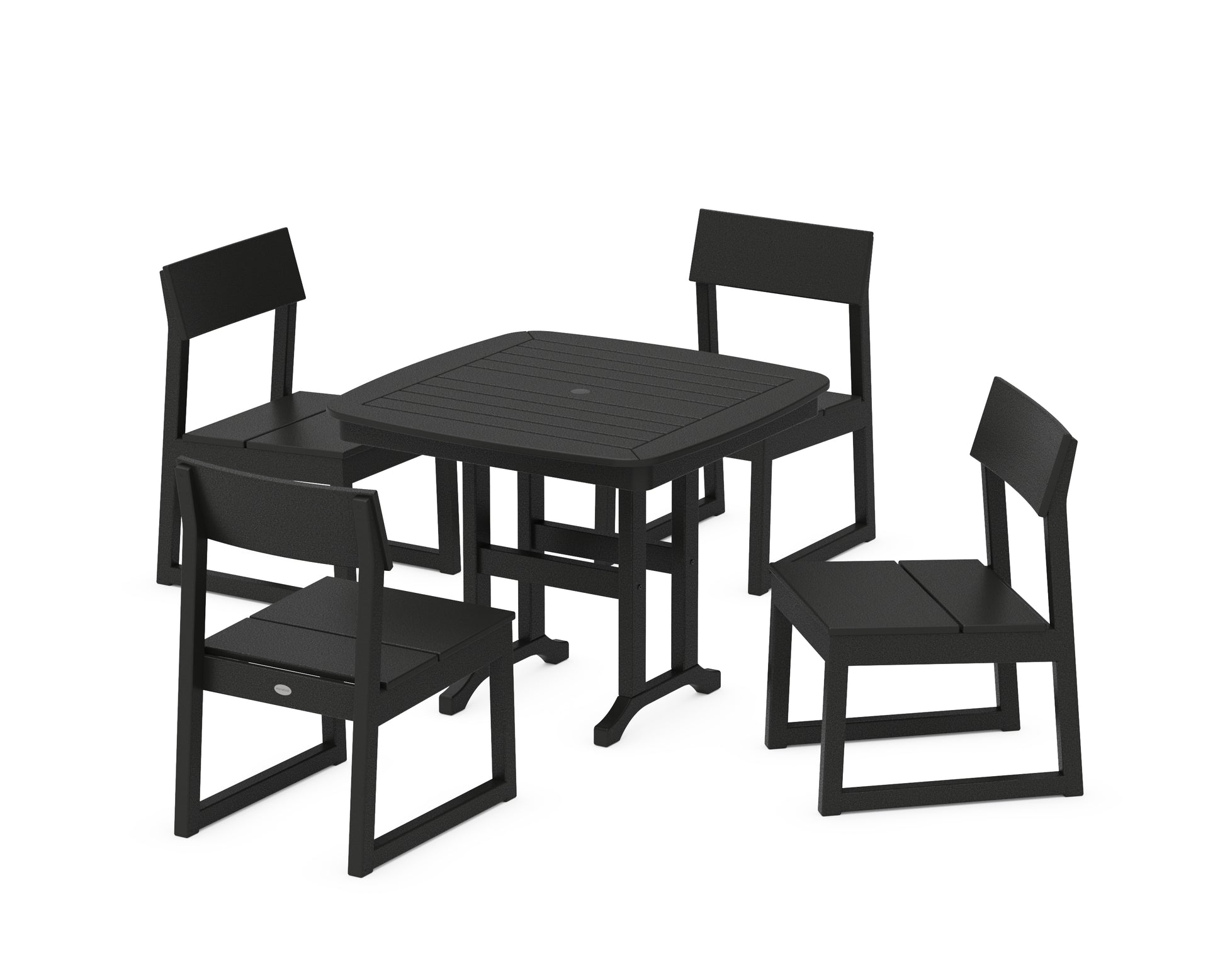 The EDGE Collection merges minimalism with sustainable design, creating all-weather furniture that leaves a lasting impression. With options sized just right for any layout, our modern outdoor dining collection seats everyone comfortably, whether you're hosting dinner on a spacious patio or an intimate balcony. The sleek EDGE Side Chair 5-Piece Dining Set includes one square table and four armchairs that boast wide seats and gently contoured backrests.