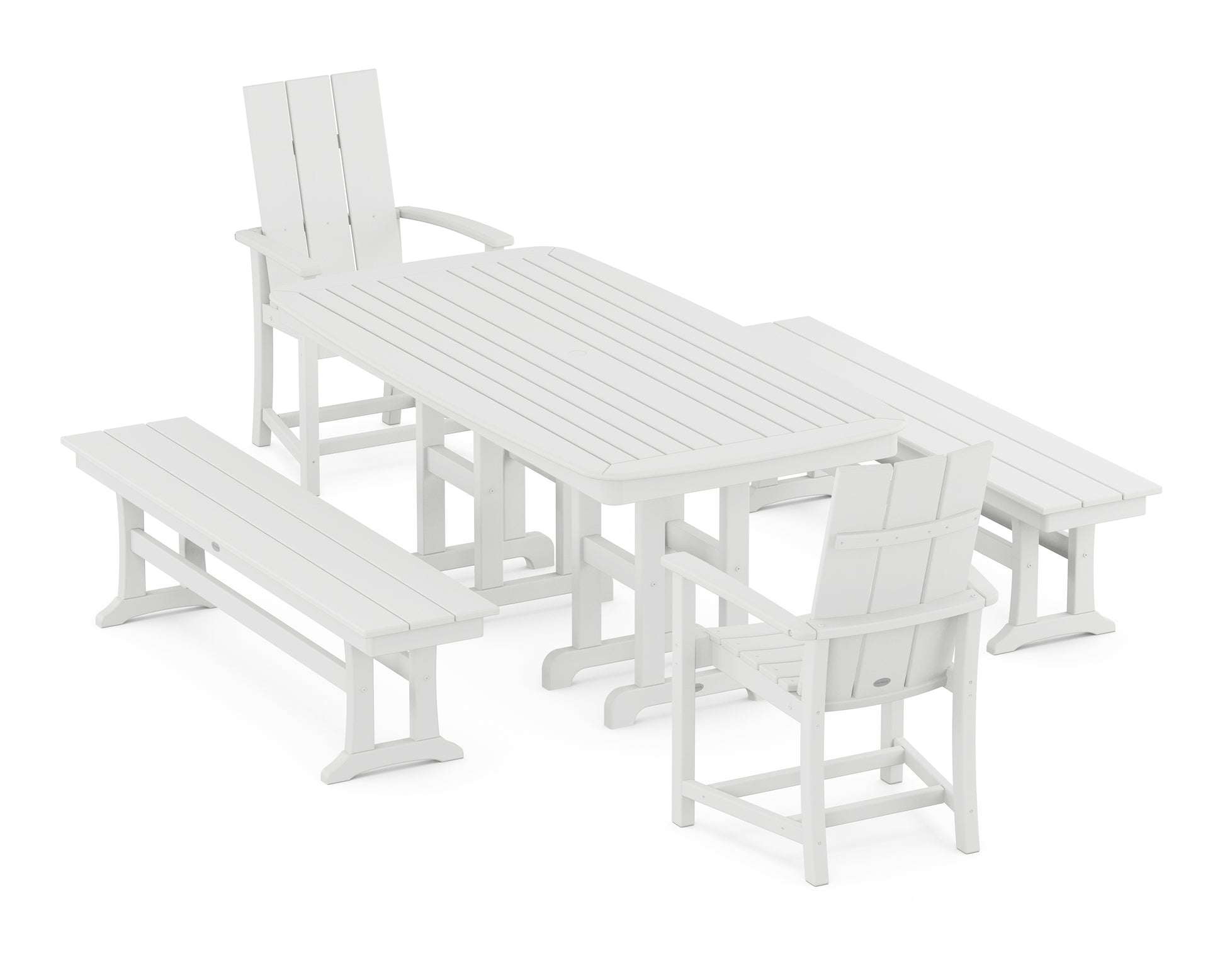 Modern Adirondack 5-Piece Farmhouse Dining Set with Benches