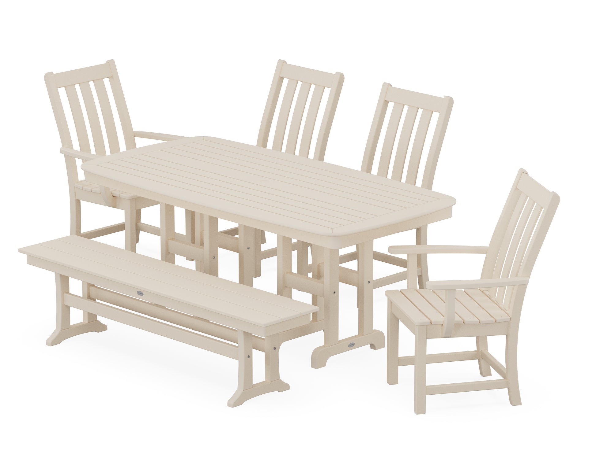 These enduring designs balance classic style with supportive, stay-all-day comfort, encouraging lingering conversations and more meals alfresco. Ideal for smaller gatherings, the Vineyard 6-Piece Dining Set with Bench includes a rectangle dining table, two side chairs, two armchairs, and a bench. We'll raise a glass to that.