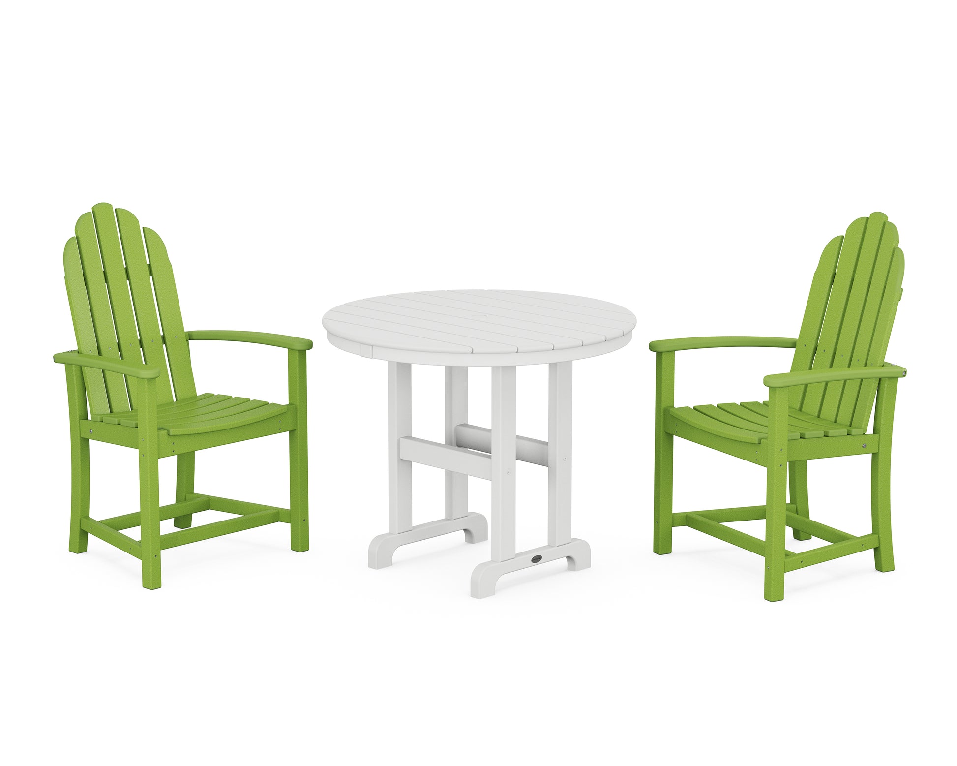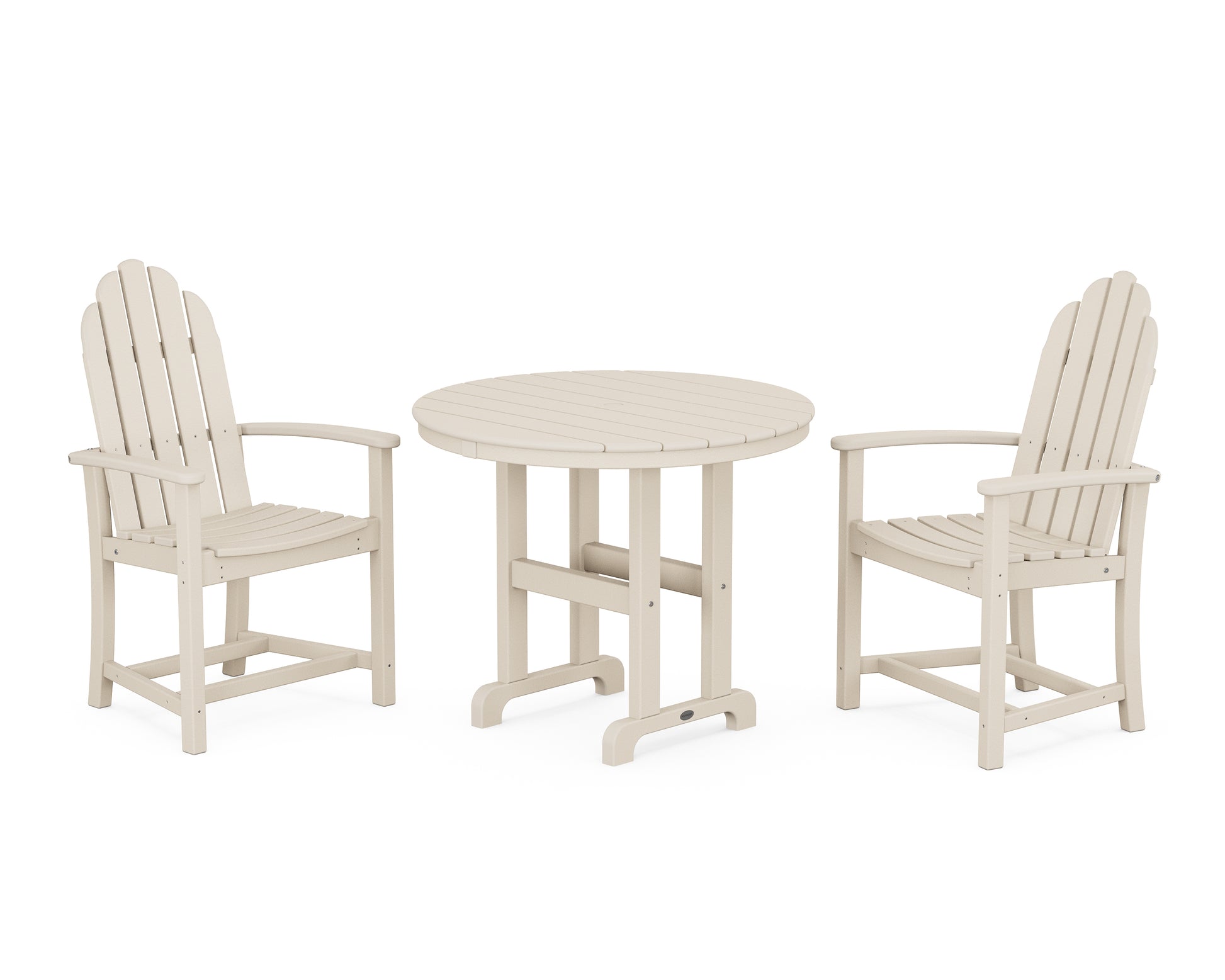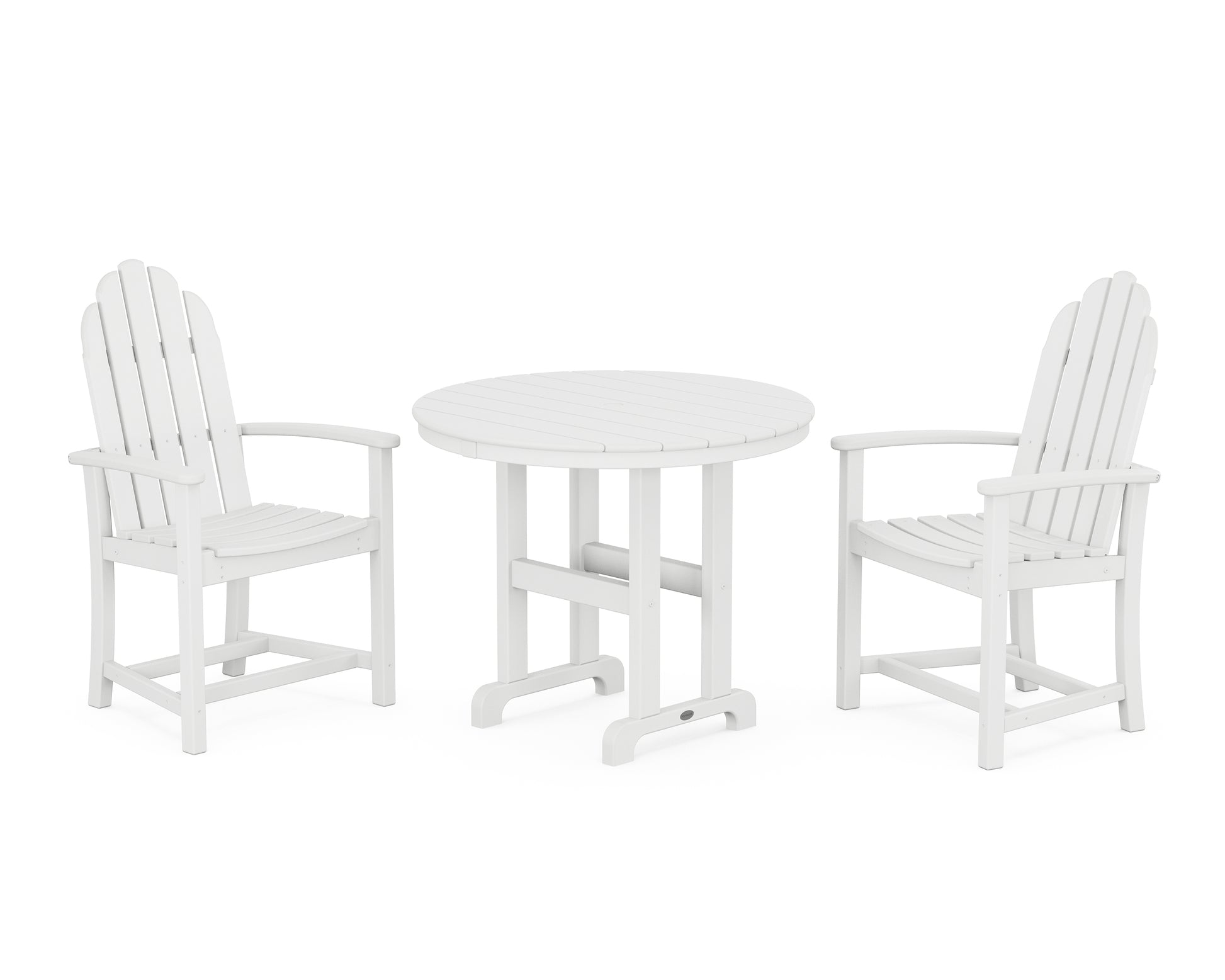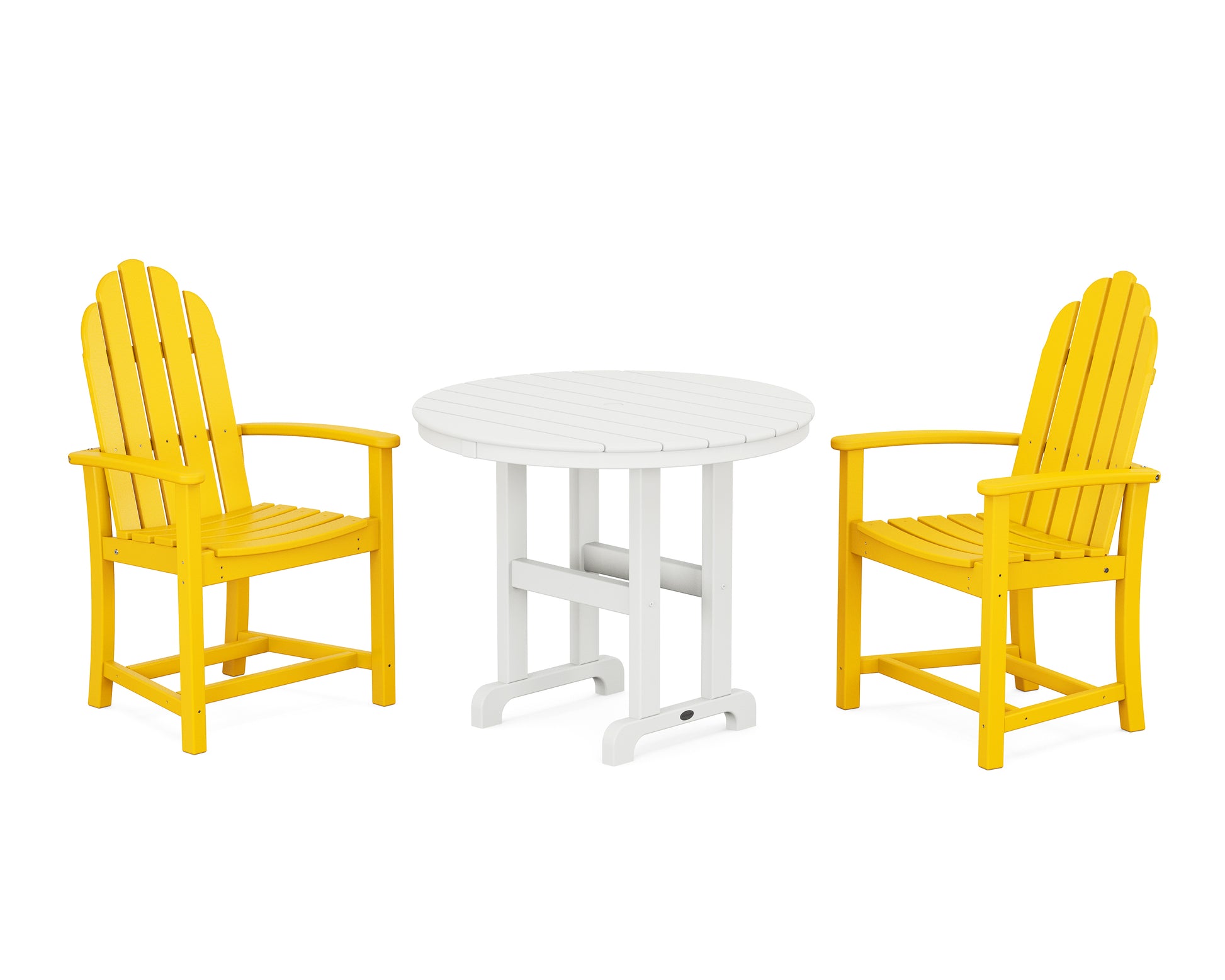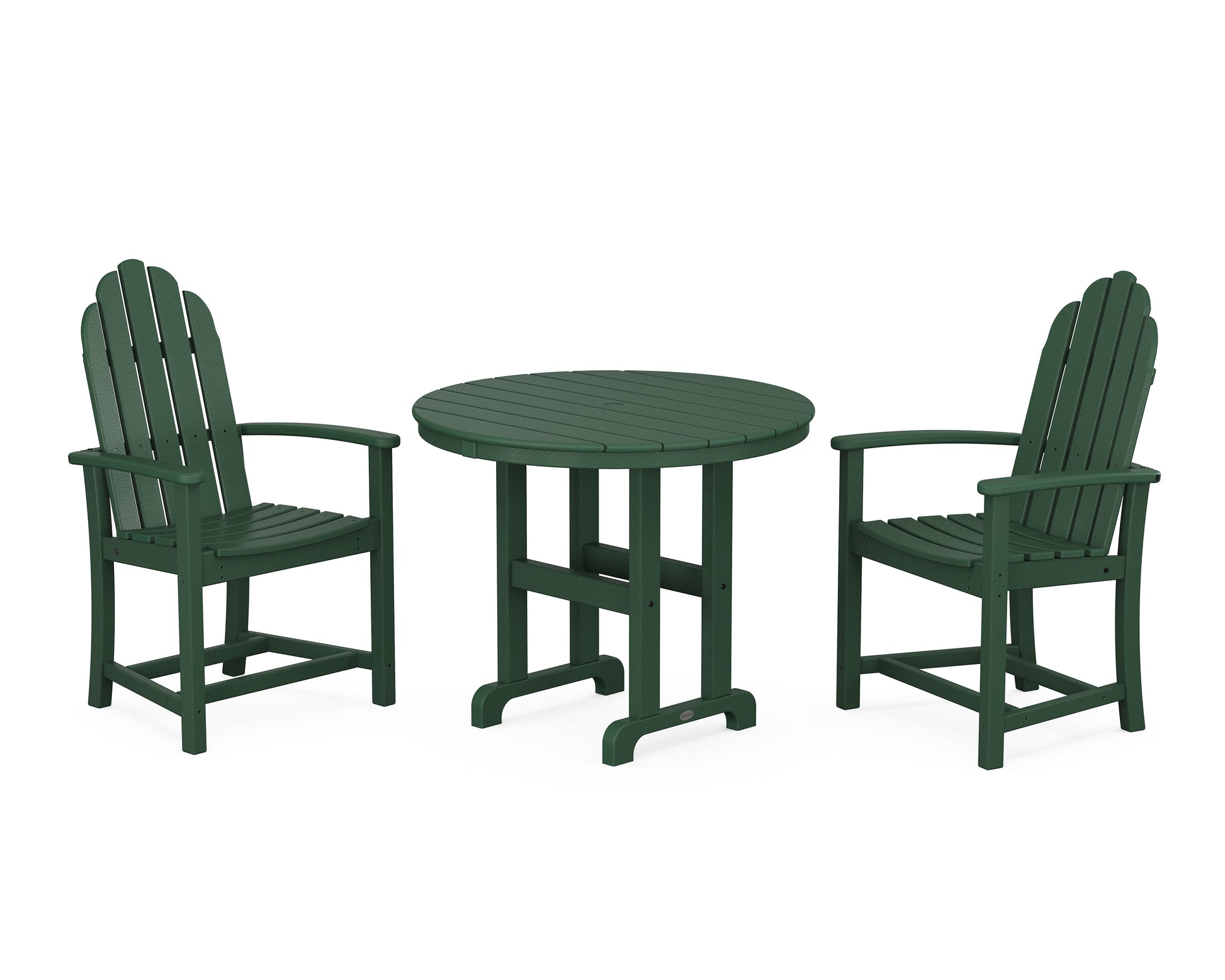 Pay homage to a summertime icon with our Classic Adirondack Collection. The dining chairs' design celebrates the original's reclined profile, spacious seat, and wide-set armrests to create an inviting atmosphere anywhere from patio to poolside. With two armchairs surrounding a round dining table, the all-weather Classic Adirondack 3-Piece Round Dining Set feels like a true slice of Americana.