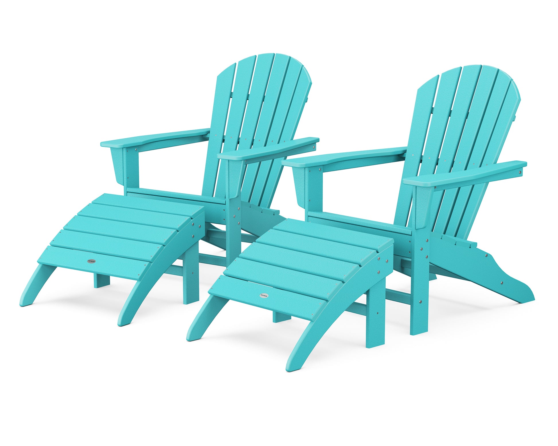 Bring an eclectic blend of art deco and traditional style to your outdoor living space with the South Beach 4-Piece Adirondack Set. Both South Beach Adirondacks in the set have coordinating ottomans. You'll love the roomy seats and curved backs of the chairs while the matching ottomans provide the ultimate in total relaxation.