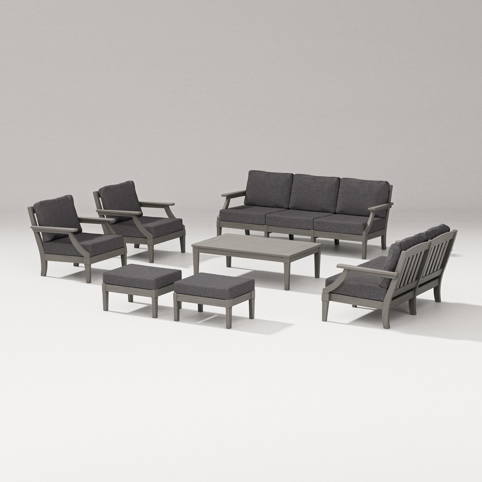 Heritage design gets a fresh perspective with elegant curves and refined lines. The Estate Collection is a study in classic beauty and approachable elegance, expressed in understated silhouettes with a textural finish. Shown here with 2 Lounge Chairs, 1 Loveseat, 1 Sofa, 2 Ottomans, and 1 Coffee Table.