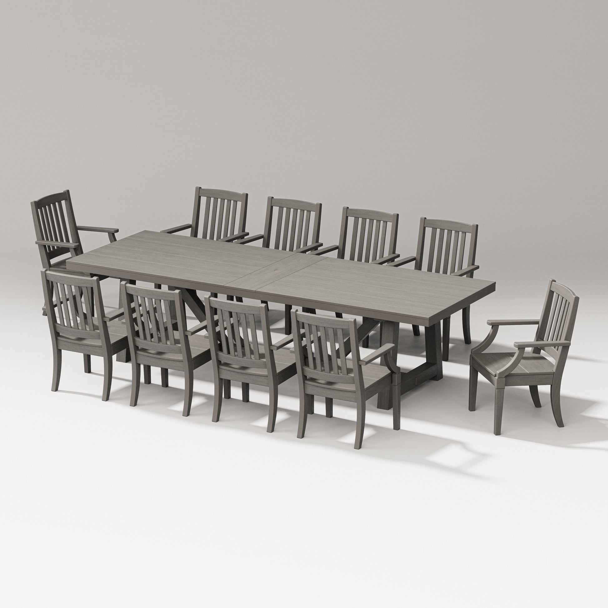 Heritage design gets a fresh perspective with elegant curves and refined lines. The Estate Collection is a study in classic beauty and approachable elegance, expressed in understated silhouettes with a textural finish. Shown here with the 120" A-Frame Dining Table and 10 Arm Chairs.