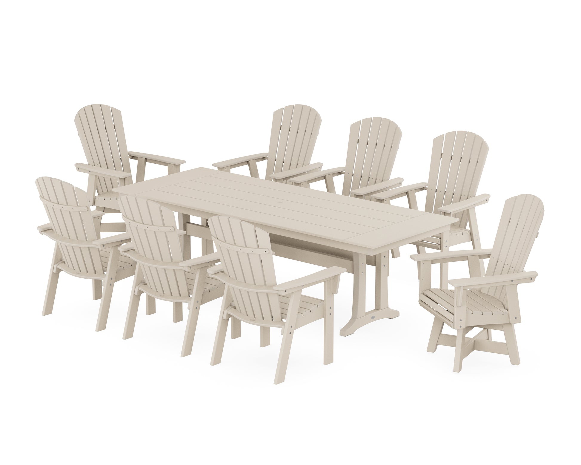 Nautical Curveback Adirondack Swivel 9-Piece Farmhouse Dining Set with Trestle Legs