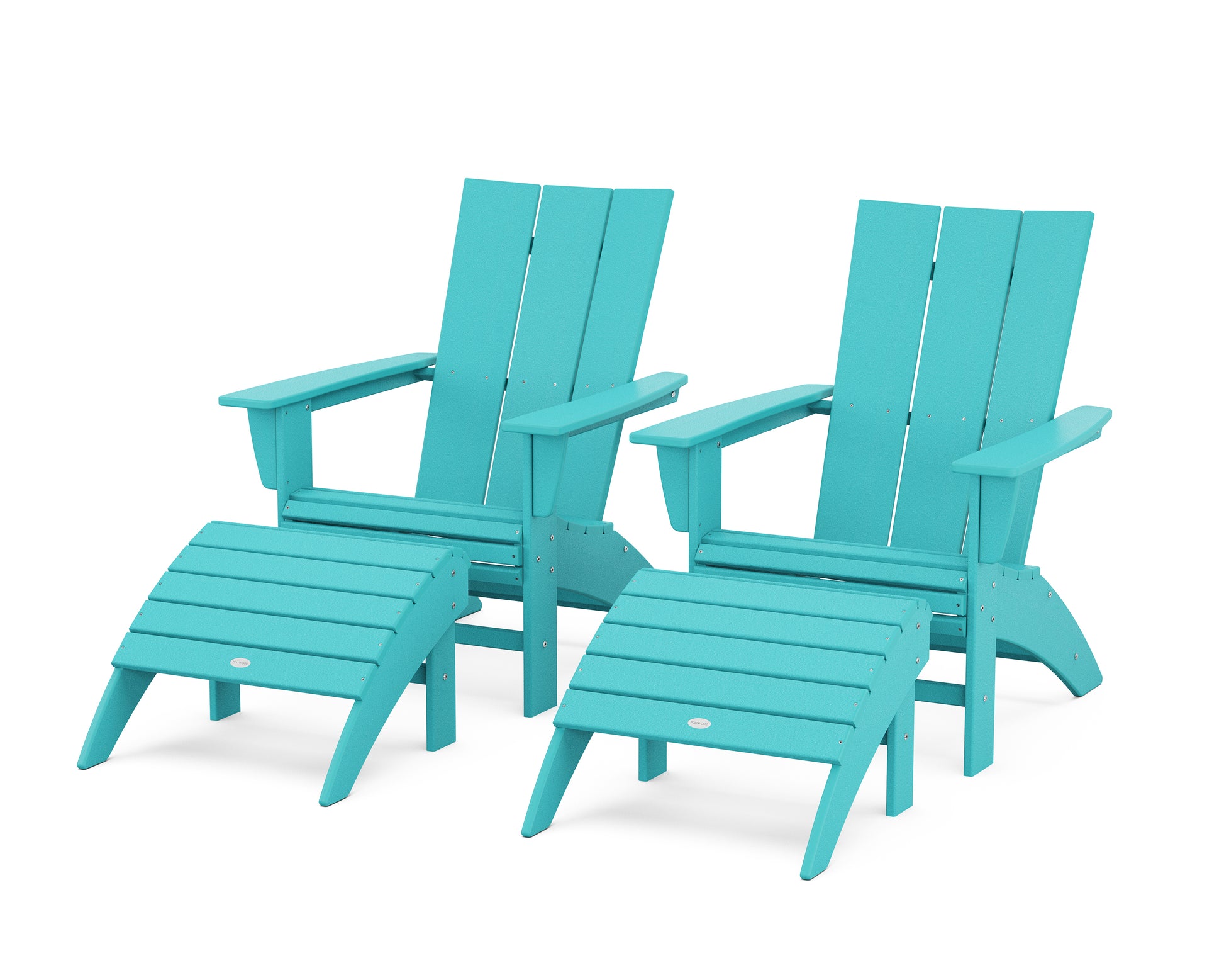 Modern Curveback Adirondack Chair 4-Piece Set with Ottomans