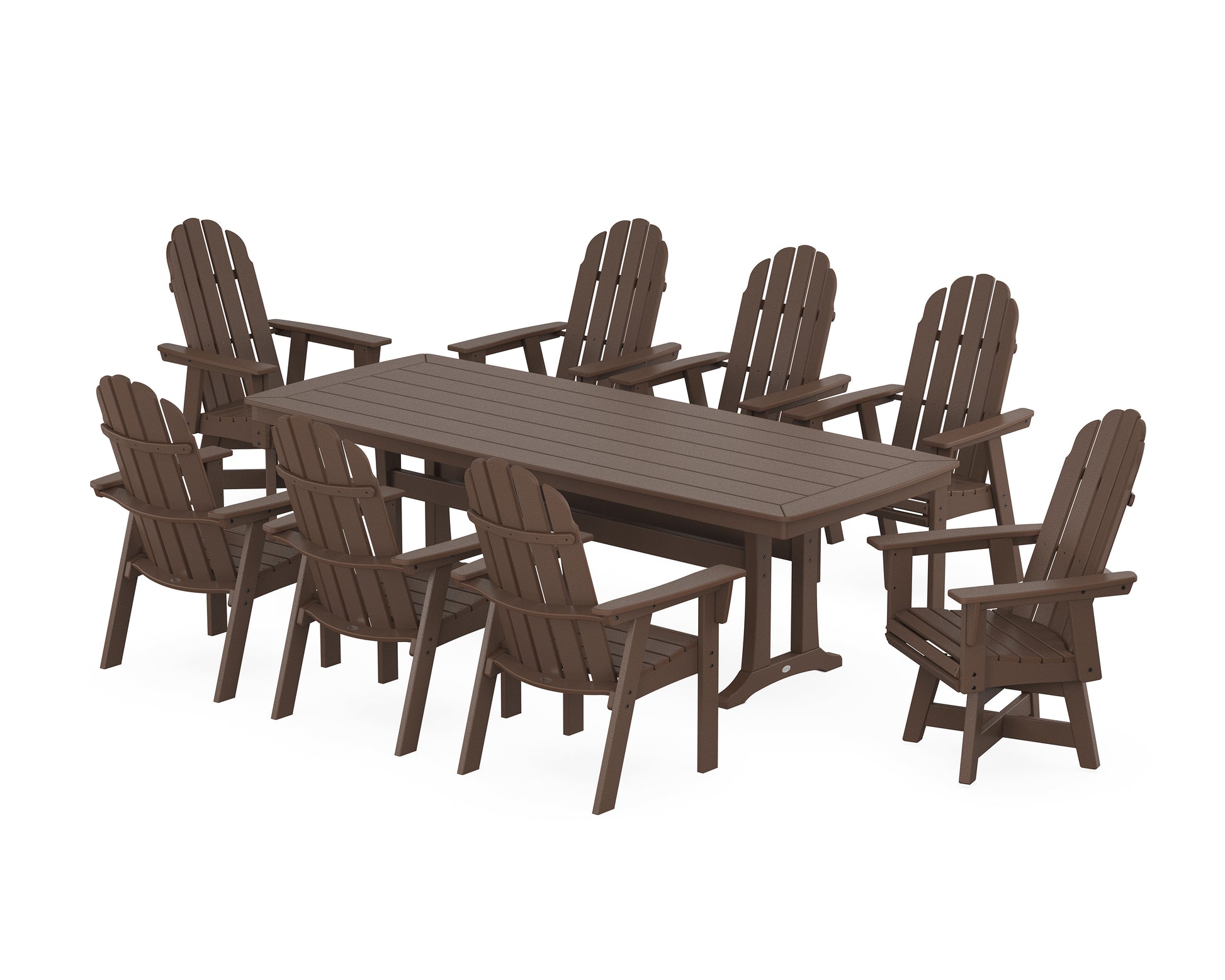 Vineyard Curveback Adirondack Swivel 9-Piece Dining Set with Trestle Legs