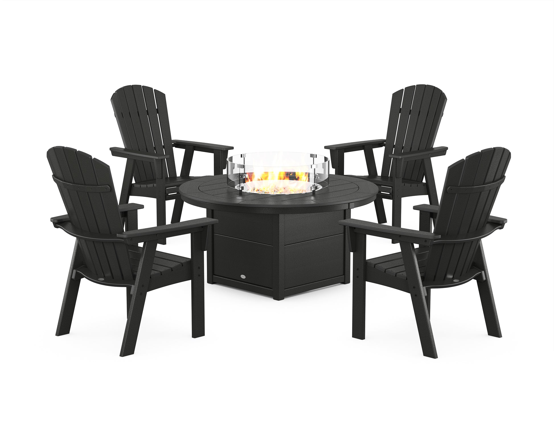 Nautical 4-Piece Curveback Upright Adirondack Conversation Set with Fire Pit Table
