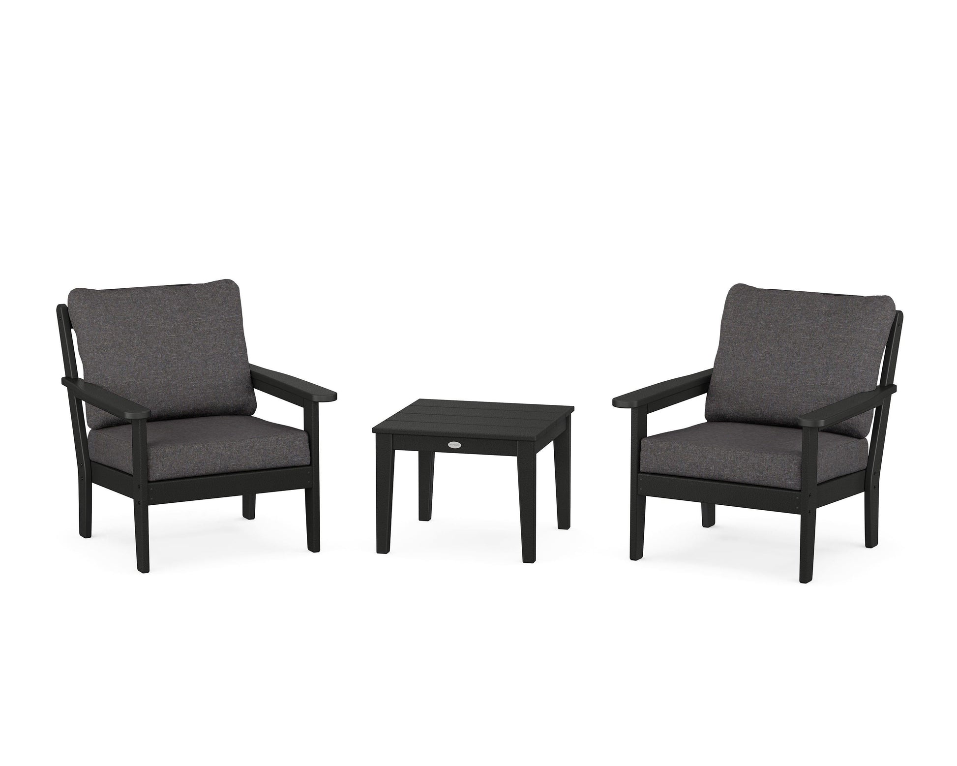 Bring that home-sweet-home feeling outside with the Cottage 3-Piece Deep Seating Set, the perfect spot to gather together or steal away for some solo time. Traditional style and stay-awhile comfort find harmony in the chairs' gently bowed backrests, supportive cushions, and embracing armrests. A coordinating end table ensures your cappuccino or cocktail is never too far away.