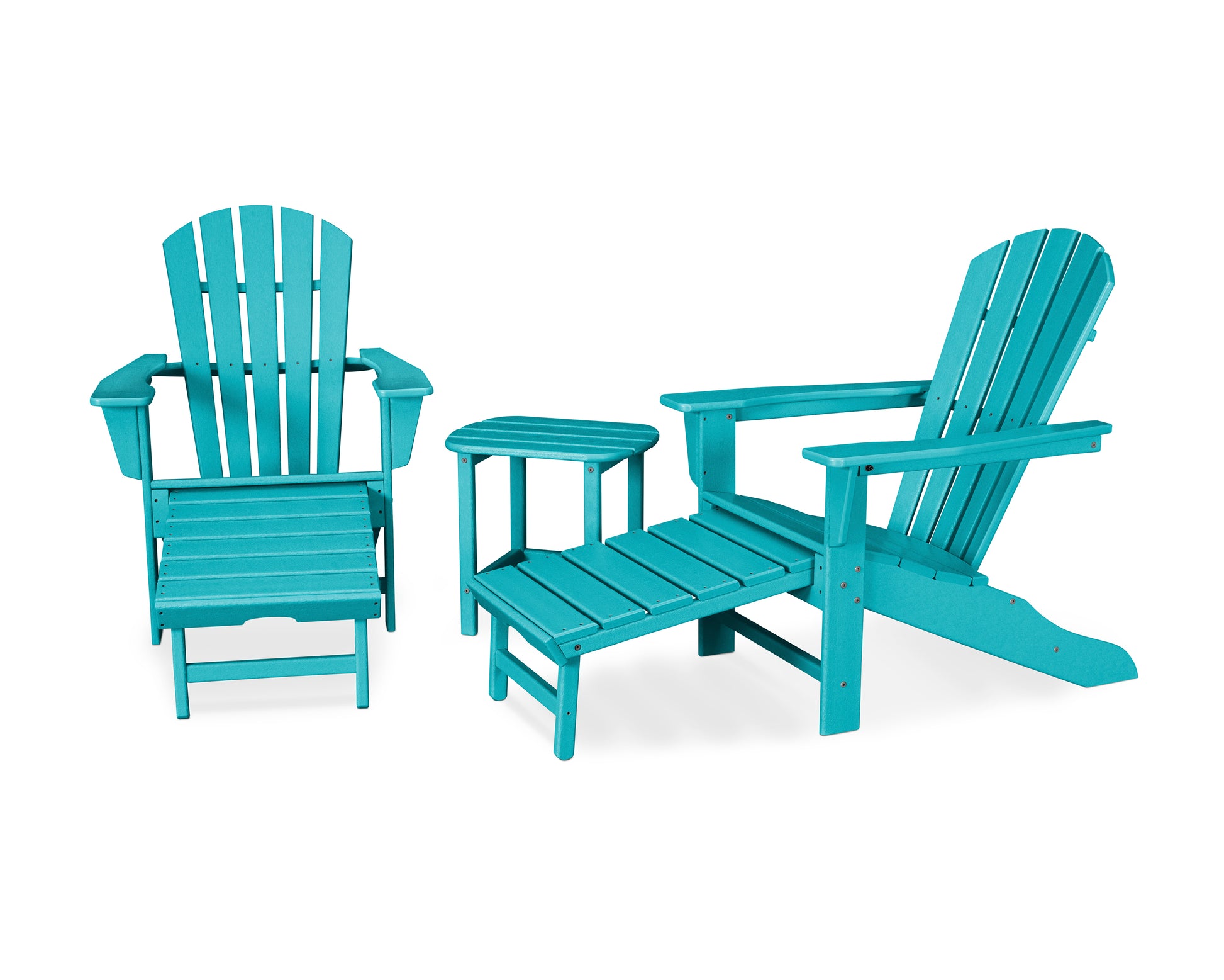 The Palm Coast Ultimate Adirondack 3-Piece Set is unmatched in laid-back comfort and convenience. Both of the Palm Coast Ultimate Adirondacks in the set have unique hideaway ottomans so you can kick up your feet, and your drink and snacks will be right by your side on the charming yet sturdy South Beach 18" Side Table.