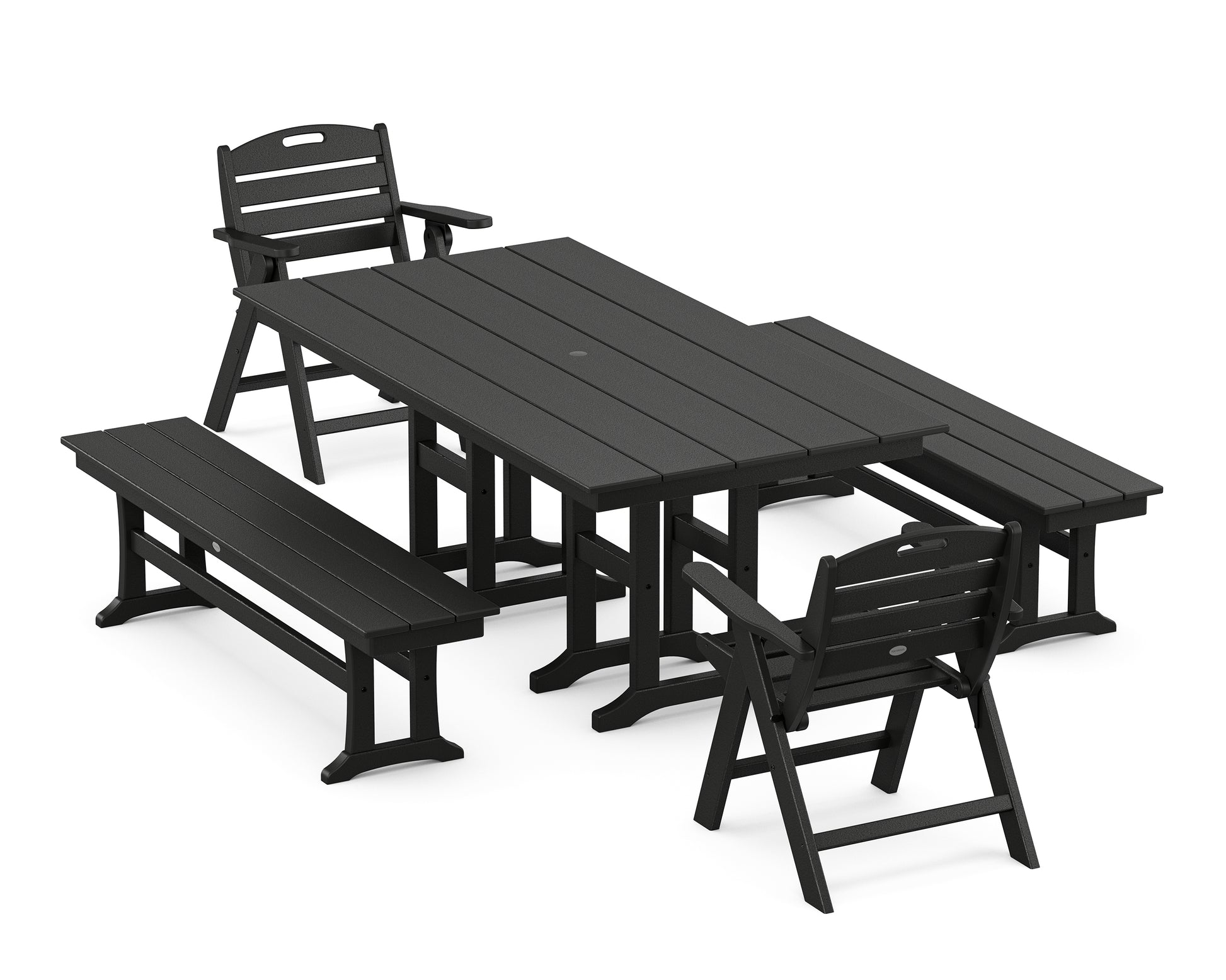 Nautical Lowback 5-Piece Farmhouse Dining Set with Benches