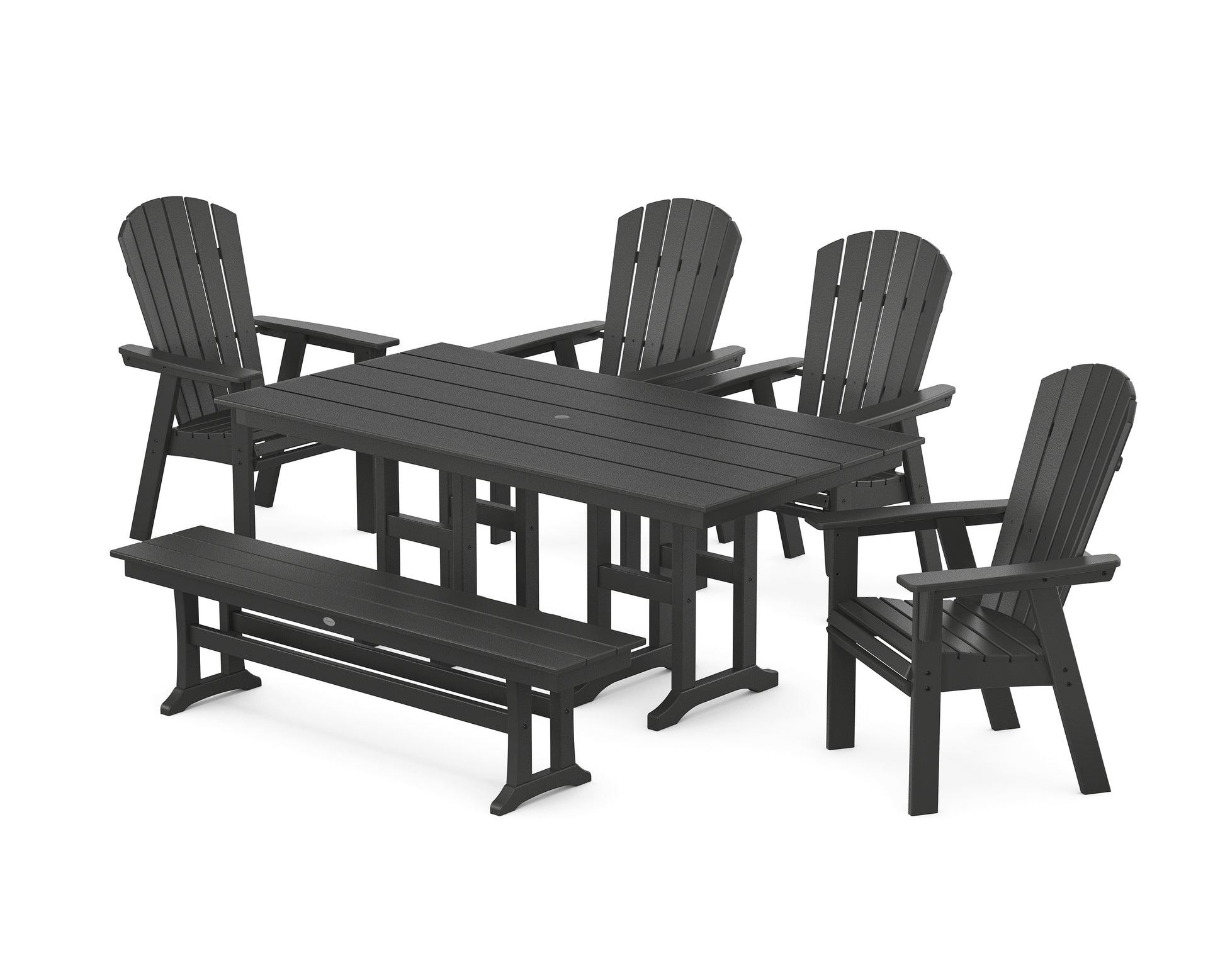 Nautical Curveback Adirondack 6-Piece Farmhouse Dining Set with Bench