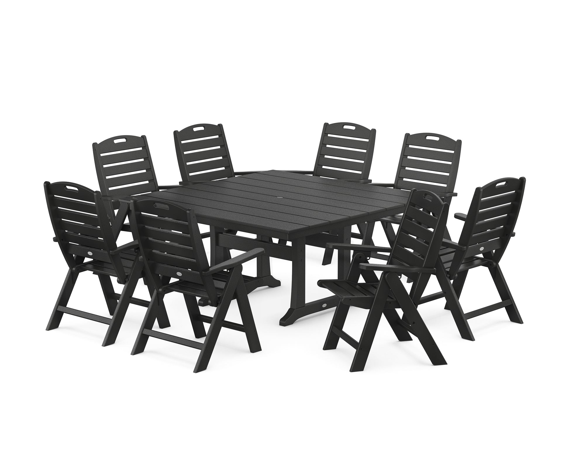 Nautical Highback 9-Piece Square Farmhouse Dining Set with Trestle Legs
