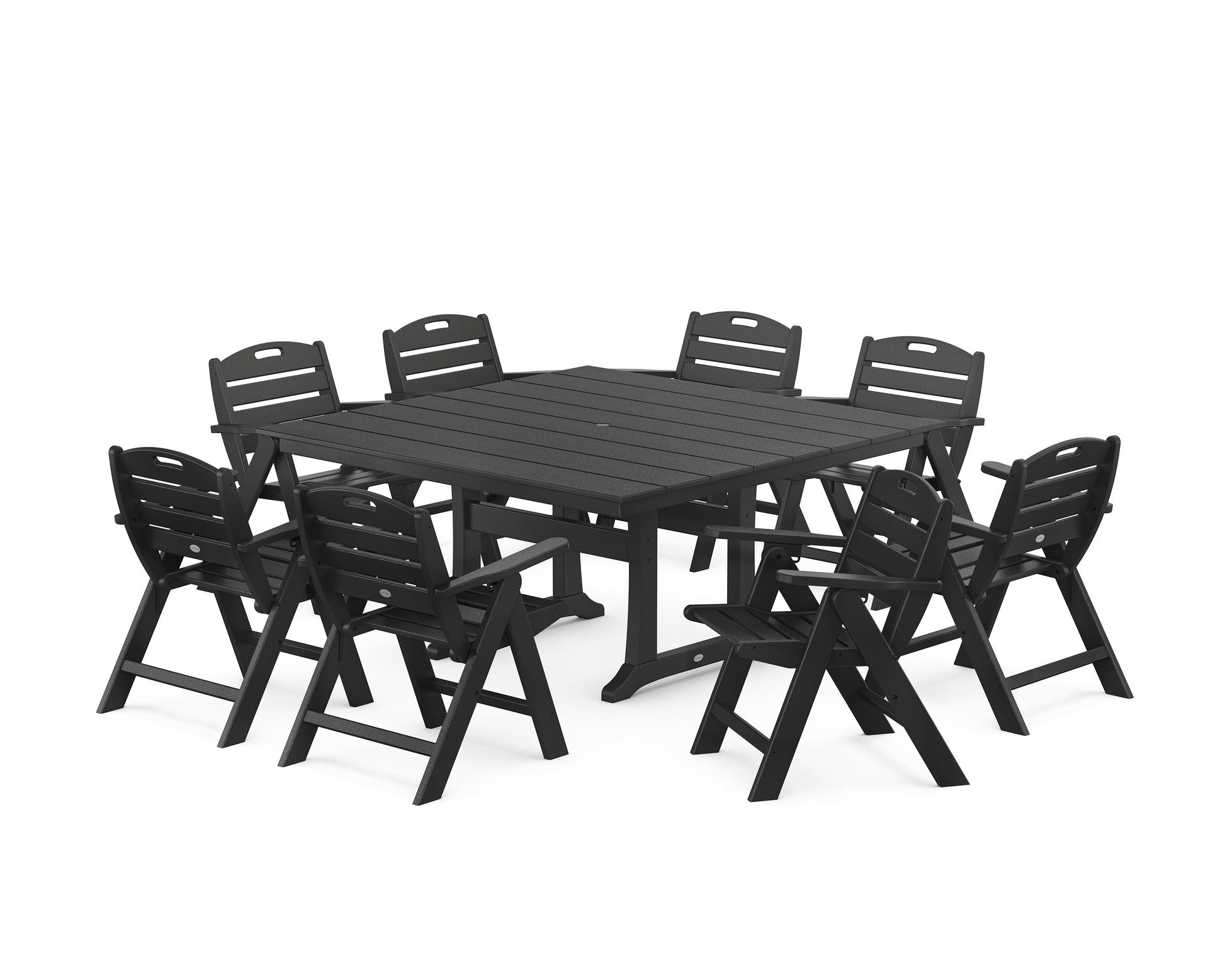 Nautical Lowback 9-Piece Square Farmhouse Dining Set with Trestle Legs