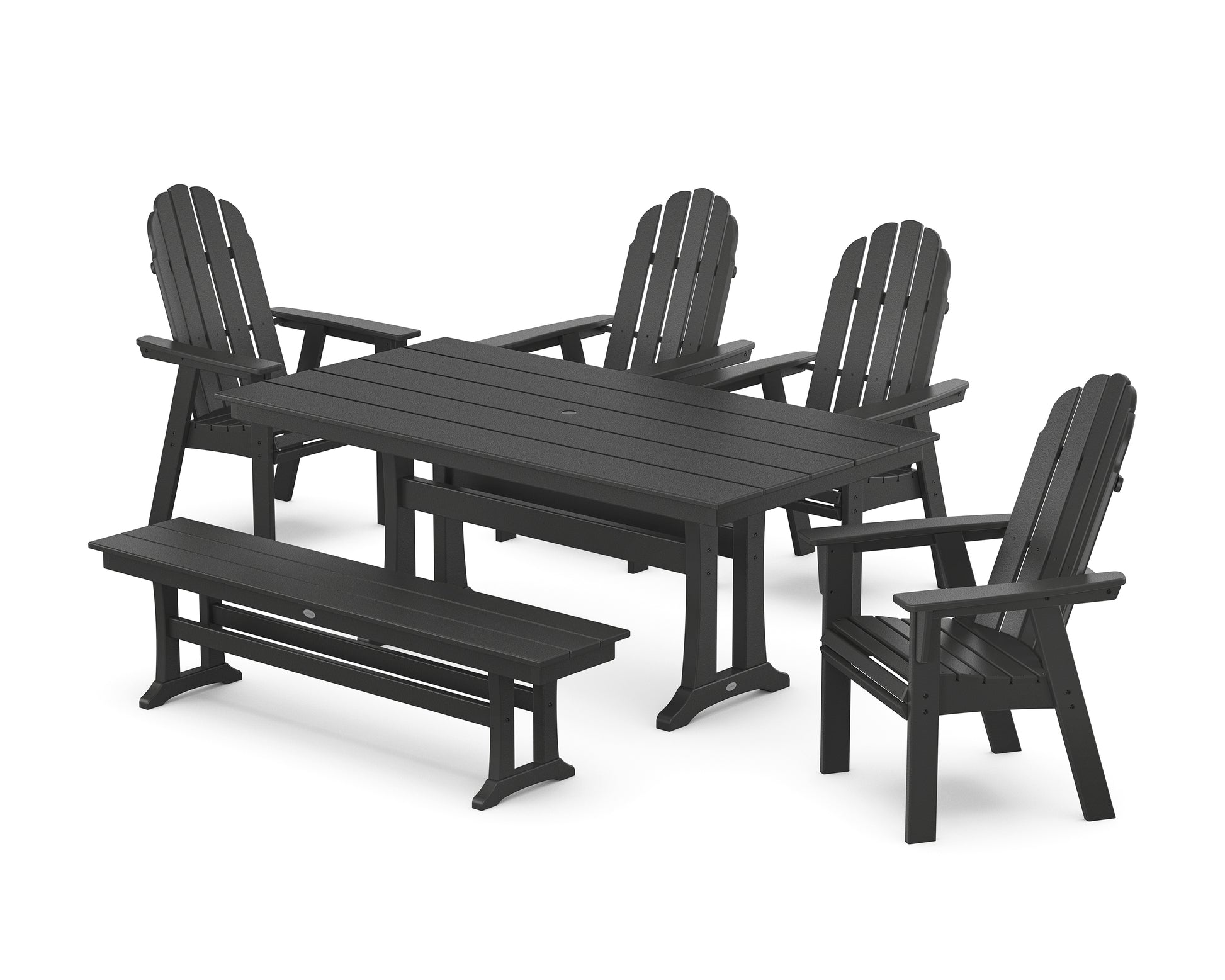 Vineyard Curveback Adirondack Chair 6-Piece Farmhouse Dining Set with Trestle Legs and Bench